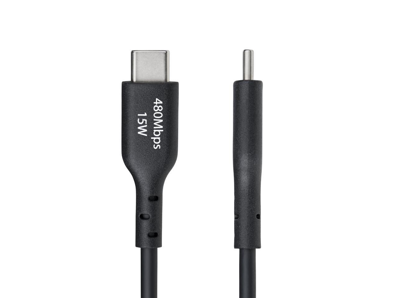 USB-A to USB-C Charging Cable supports 15W/3A Fast Charge and 480Mbps; Connect to a USB-A charger/power bank/hub; Works w/portable USB-C devices; Color: Black; O.D.: 3.5mm; Jacket: TPE w/Braided Shield; NOTE: No USB-C video (DP Alt Mode) support