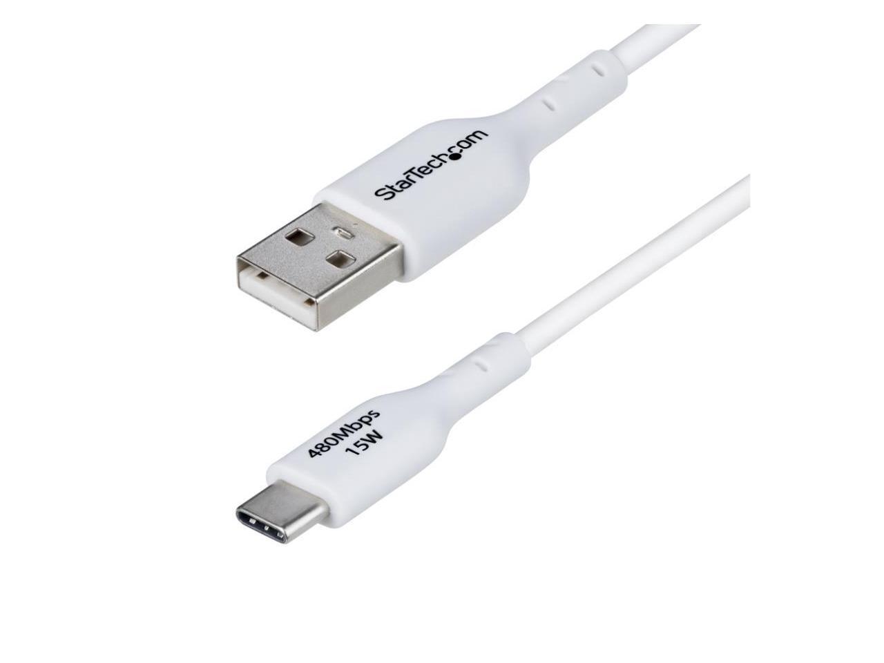 StarTech 3ft (91cm) USB-A to USB-C Charging Cable, Charge & Sync, 3A, USB 2.0, TPE Jacket - White USB Charging Cord - USB2AC3FWHE