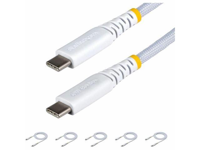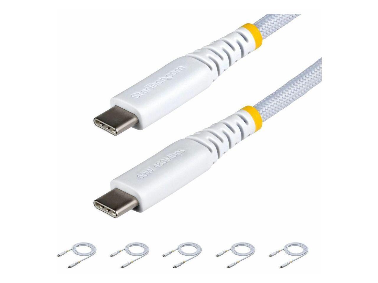 StarTech.com 5-Pack 3ft (91cm) White USB-C Charging Cable, 60W (3A) PD, Dual-Layer Braided Nylon/TPE Jacket, Rugged USB C Cord