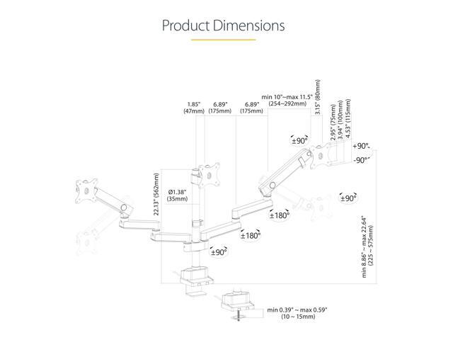 - ONE-TOUCH ADJUSTMENT: Mechanical spring-assisted arms w/height range of 10inches (255mm) & max arm extension of up to 28.4inches (722mm) from the pole; Designed for adjustable arm height along the pole