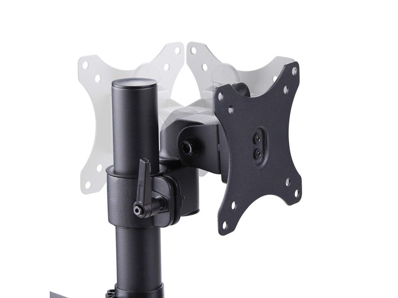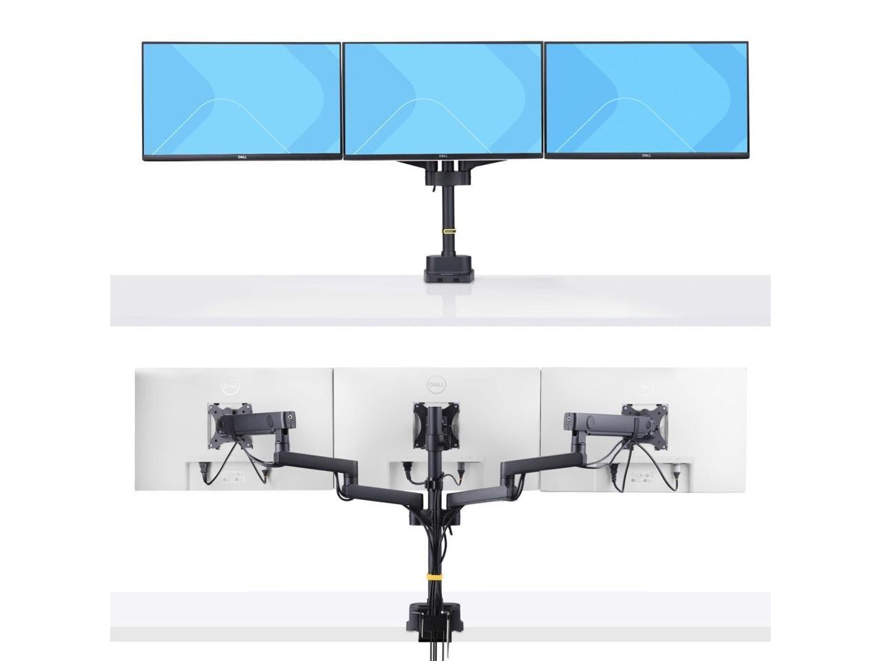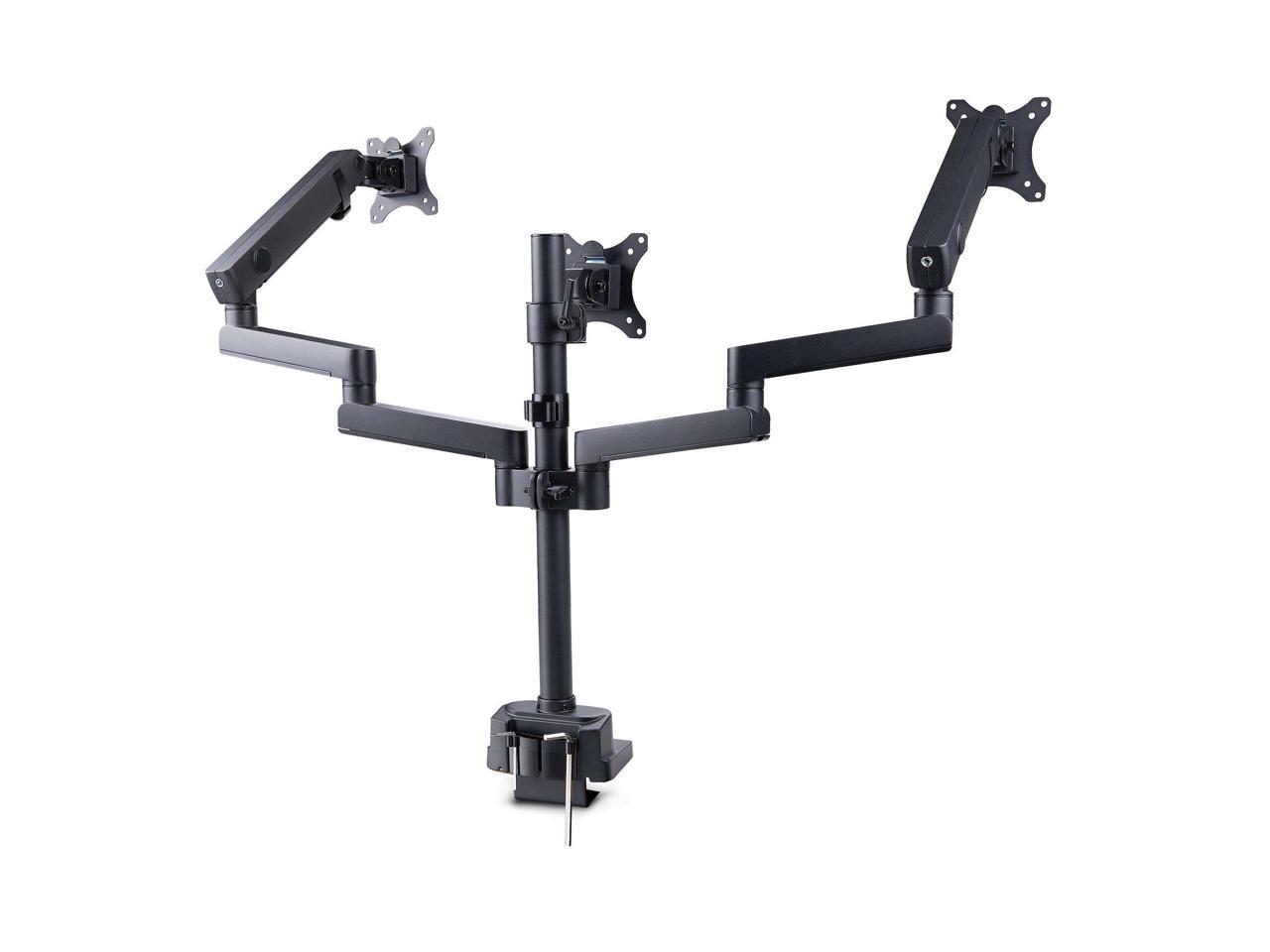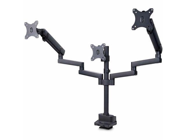 - DESK MOUNT MONITOR ARM: Triple monitor VESA mount (75x75/100x100mm) supports up to 15.4lb (7kg) 27-inch displays; Dual articulating and height adjustable steel arms w/central fixed monitor mount; C-clamp/grommet mounting