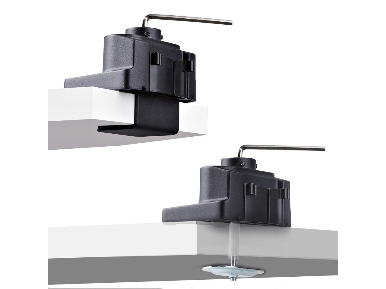 - QUICK INSTALLATION: Unique top-screw desk clamp for hassle-free installation without the need to go under the desk; Interchangeable C-clamp/grommet mount for desks up to 2" (50mm) thick; Includes tools for arm tension adjustment; Quick release VESA plates