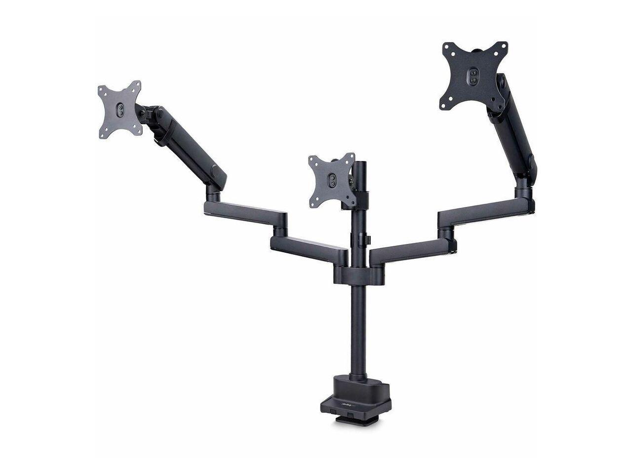 Startech Triple monitor desk mount with support up to 27" monitors with height adjustable articulating arms - VESA 75x75/100x100, Tool-Less Arm Adjustments, C-Clamp/Grommet Mount