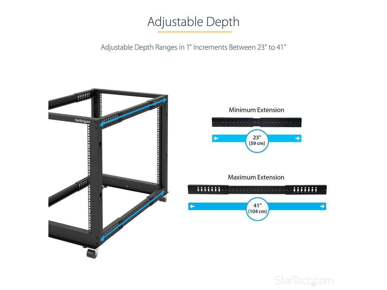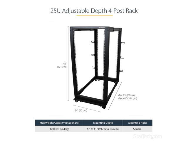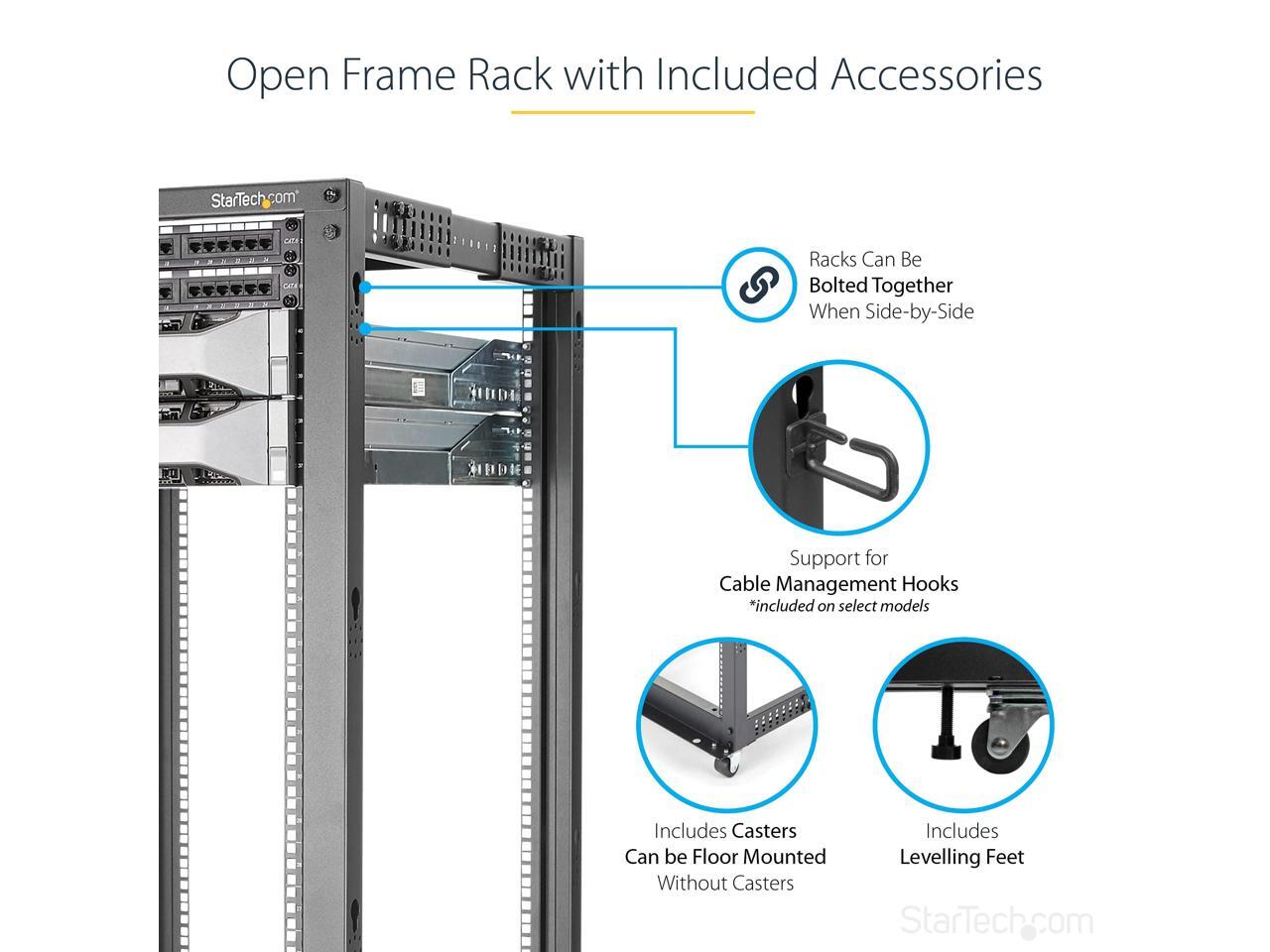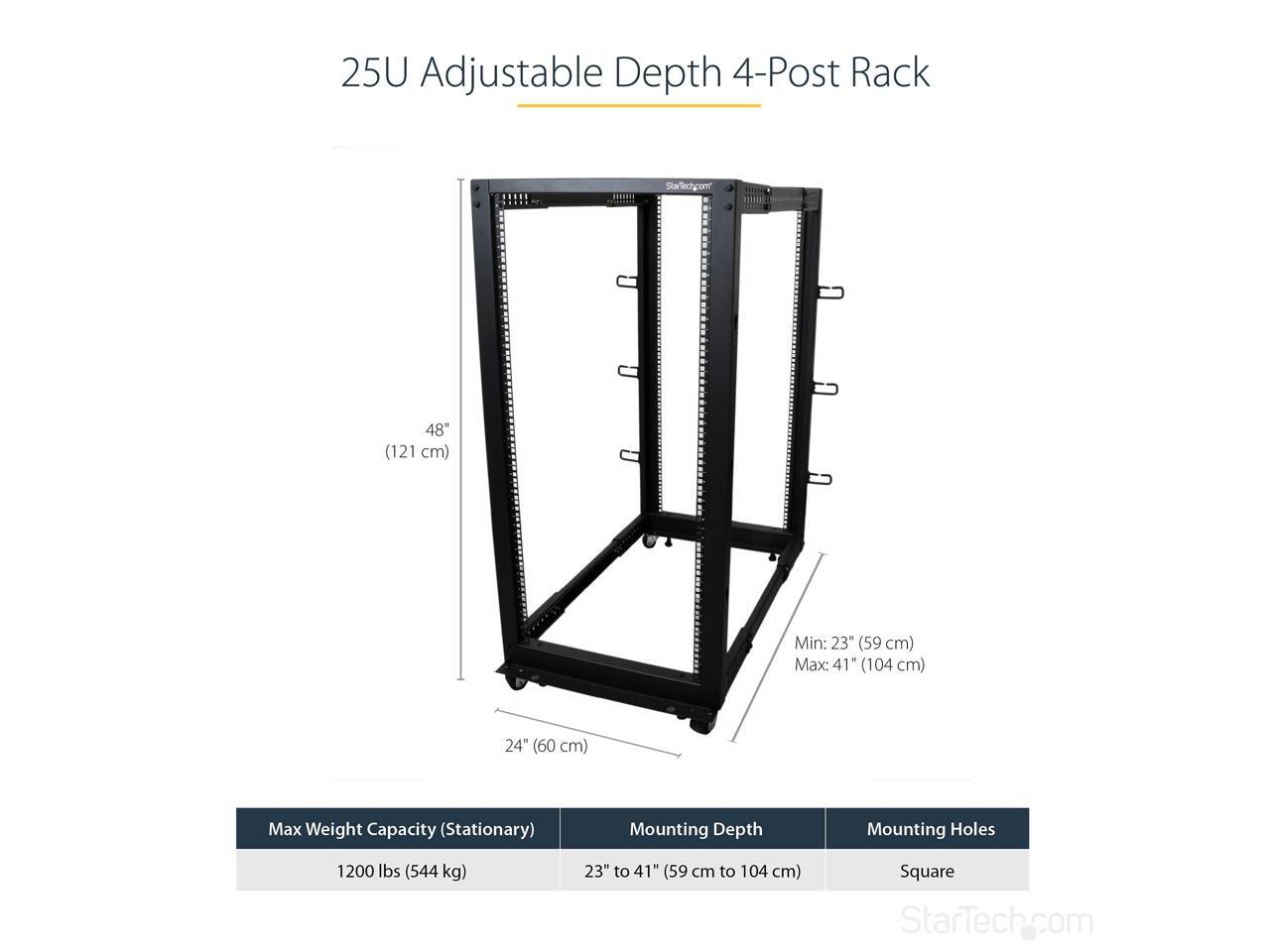 StarTech.com 4POSTRACK25U 25U Adjustable Depth Open Frame 4 Post Server Rack Cabinet - w/ Casters / Levelers and Cable Management Hooks