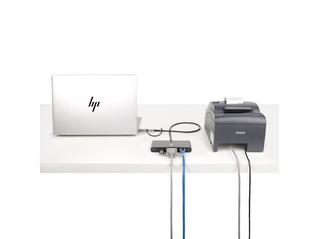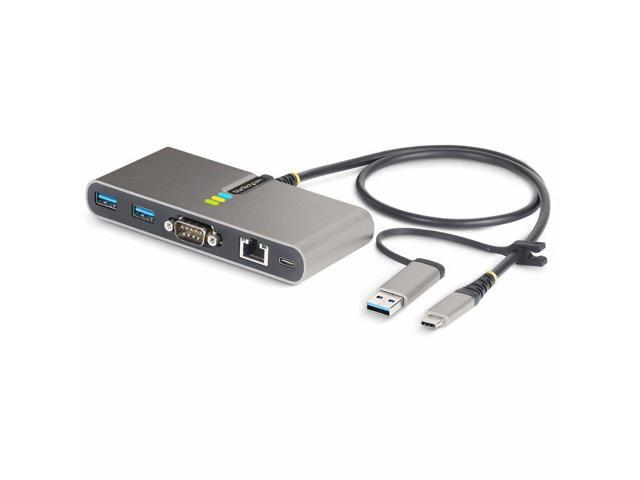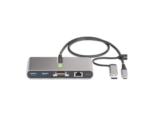 - 2-PORT USB-C HUB: Portable USB 5Gbps expansion hub features a built-in 2ft USB-C host cable & attached USB-C to USB-A dongle; 2-Port USB Type-A (5Gbps) Hub; Overcurrent Protection; 1x RS-232 Serial Adapter (FTDI); 1x Gigabit Ethernet; 100W PD Pass-Through