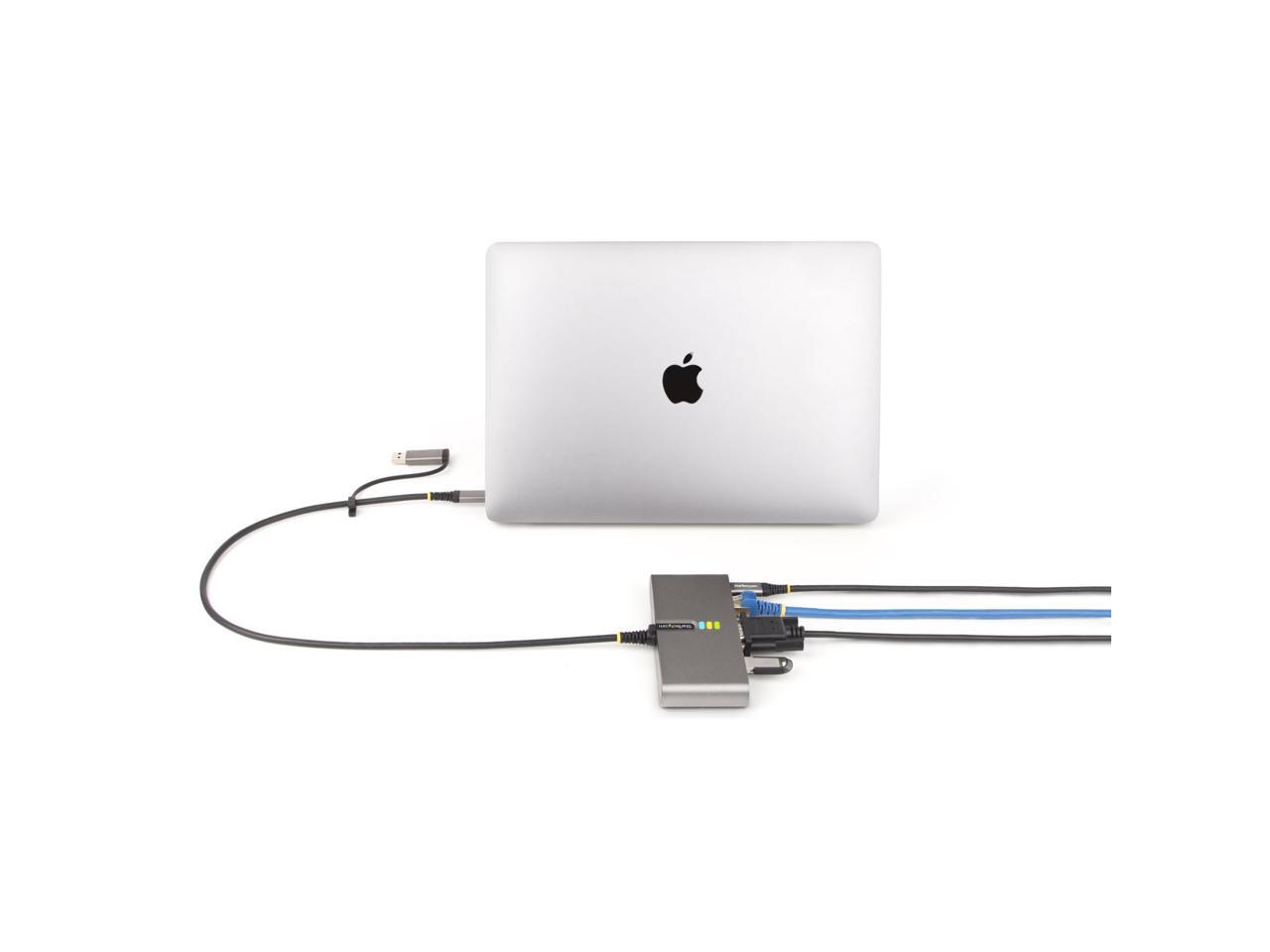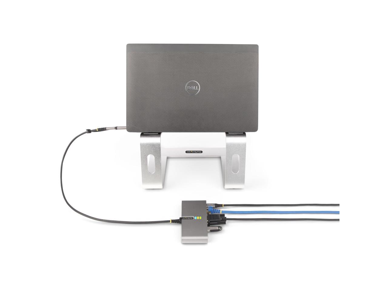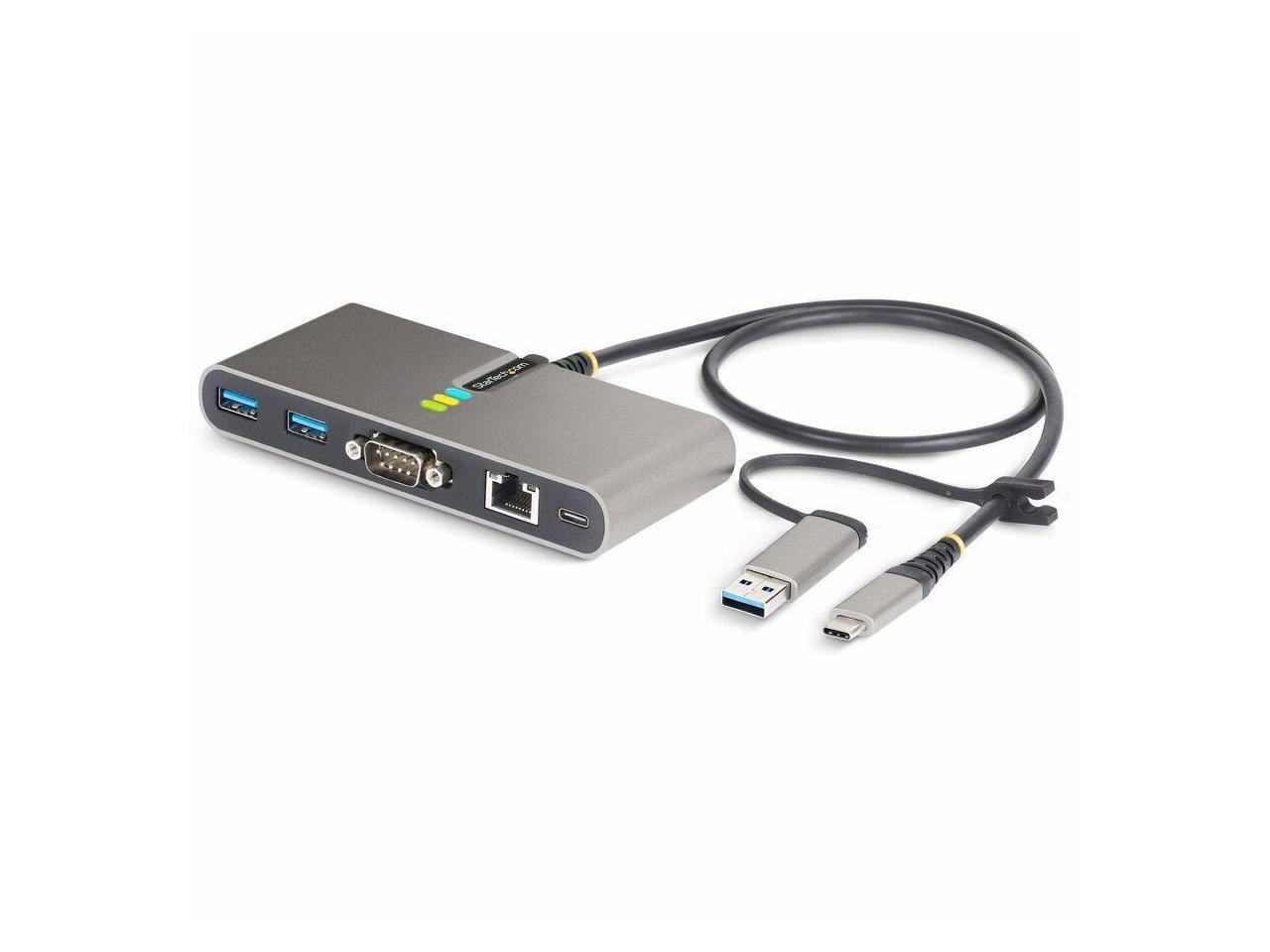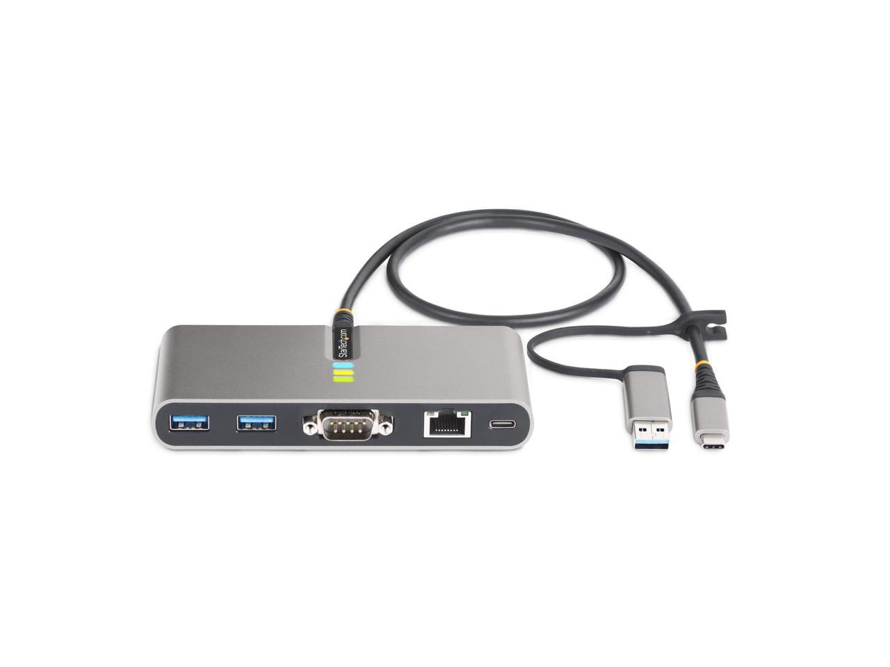 StarTech.com 2-Port USB-C Hub with Gb Ethernet and RS232 FTDI Serial, Attached USB-C to USB-A Dongle, 100W PD Pass-Through, 2x USB-A 5Gbps