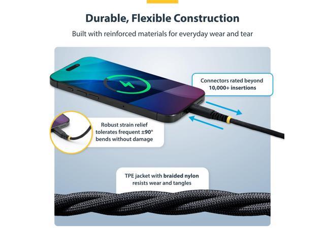 - PERFORMANCE: 6-inch (15cm); 60W/3A Power Delivery 2.0; USB 480Mbps; Color: Black; 23/28AWG; O.D.: 0.16in (4mm); Dual-layer TPE Jacket with Braided Nylon; NOTE: USB-C video (DP Alt Mode) is not supported
