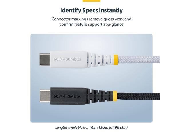 StarTech.com 6in (15cm) White USB-C Charging Cable, 60W (3A) PD, Dual-Layer Braided Nylon/TPE Jacket, Rugged USB C Charger Cord