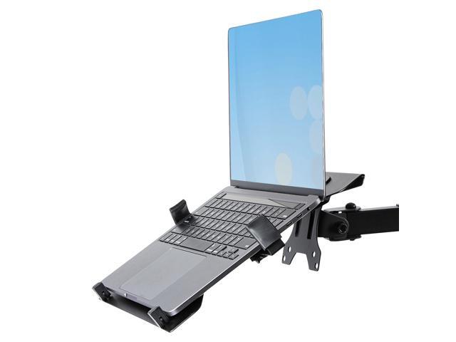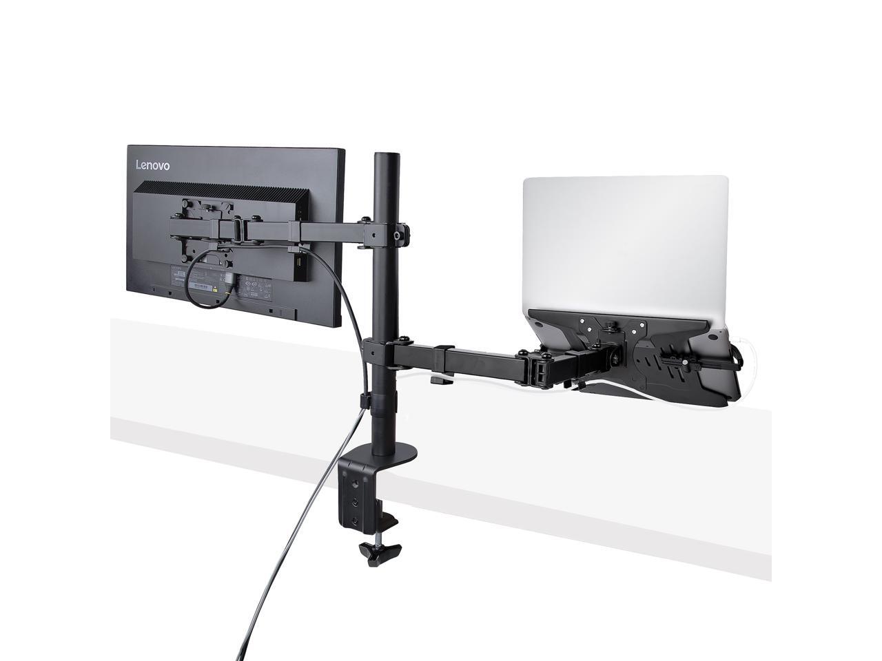 - MONITOR ARM AND LAPTOP TRAY: This black dual-purpose mount allows you to mount a laptop using the ventilated VESA laptop tray and up to a 32" display with basic articulation & height adjustment. Capacity 8kg/17.6lb monitor and 4.5kg/10lb laptop