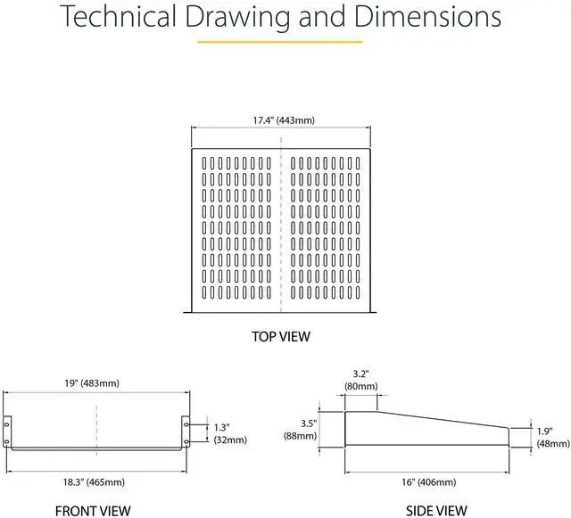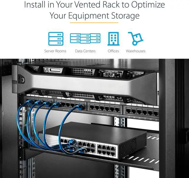 StarTech.com’s line of vented rackmount shelves fit universally into any EIA-10 19” wide rack or rack cabinet.