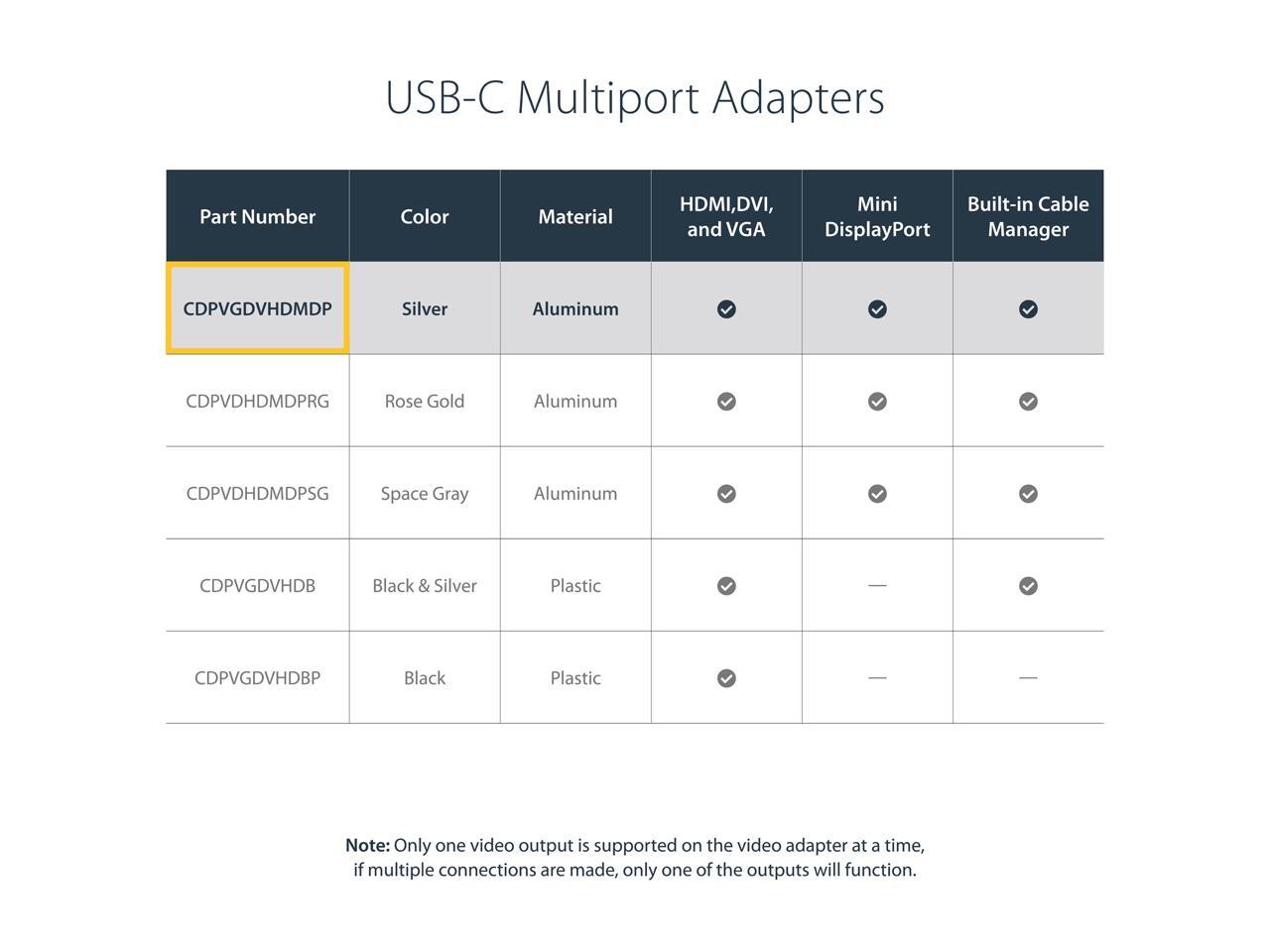 - USB-C multiport video adapter supports 4K on HDMI and mDP outputs