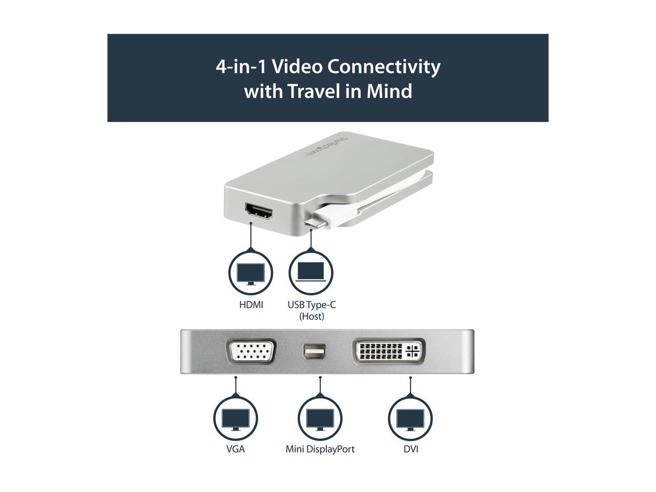 StarTech.com CDPVGDVHDMDP USB C Multiport Video Adapter - Aluminum - USB-C to VGA/HDMI/Mini DisplayPort/DVI Adapter -Display Adapter (CDPVGDVHDMDP)