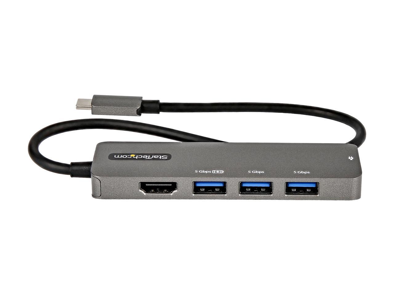 - USB-C multiport adapter with 4K 60Hz HDMI 2.0 video (w/ DP 1.4 Alt Mode) | 4K 30Hz w/ DP 1.2 - USB Hub (5Gbps USB 3.2/3.1 Gen 1) w/ 3x USB-A (1x BC 1.2) + 1x USB-C (100W PD) - 100W Power Delivery 3.0 Passthrough (12W for adapter/up to 88W charging) w/ USB Type-C laptop power adapter or bus powered - Travel USB C mini dock w/ 12" long cable for extended reach to iPad Pro/Surface Pro 7/Macbook Pro/Air (Intel processor + M1 chip) - Works w/ Thunderbolt 3 - Win/macOS/Chrome/iPadOS/Android