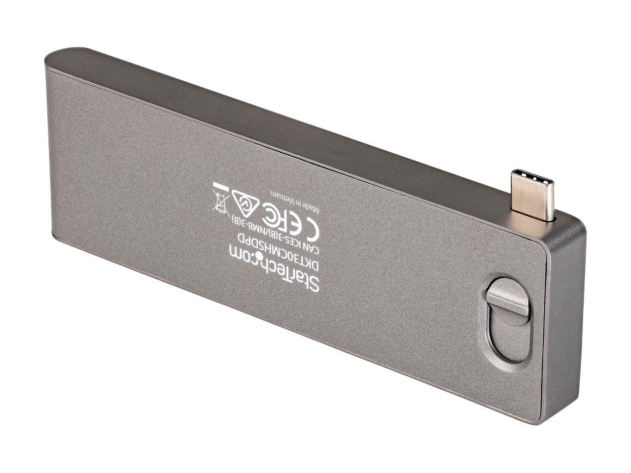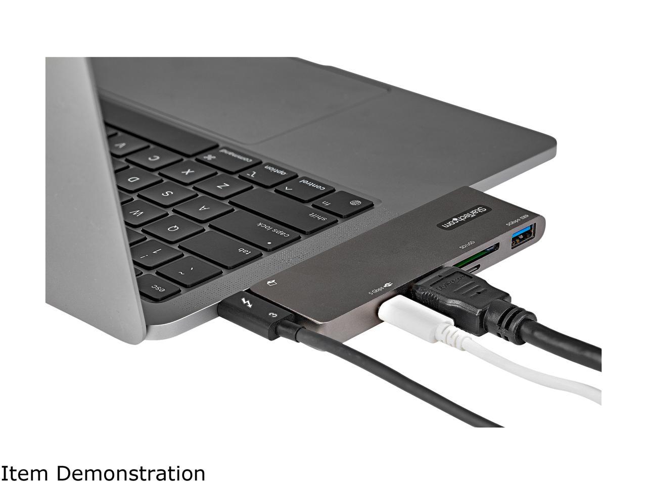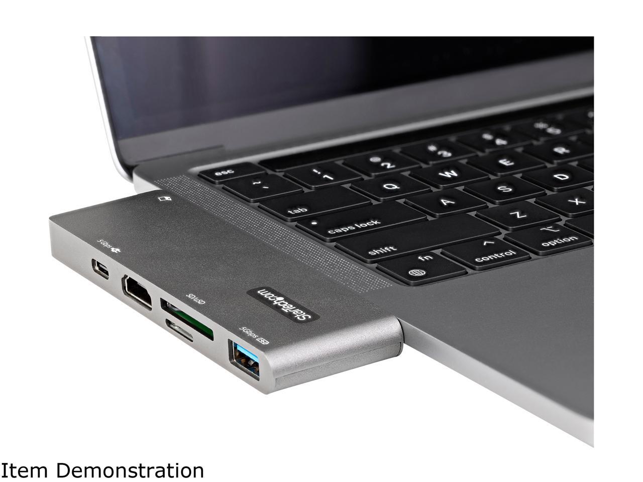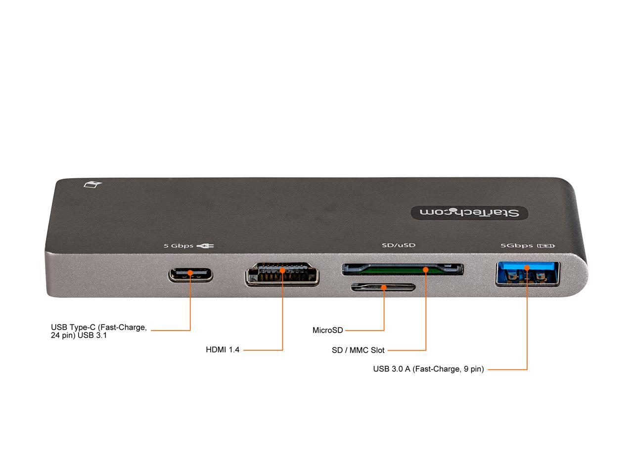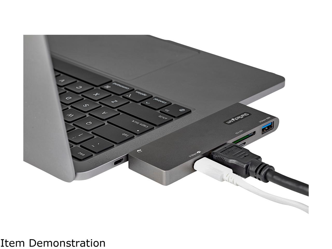 USB-C multiport adapter (5Gbps USB 3.1/3.2 Gen 1) w/ 4K 30Hz HDMI/USB Hub with 1xUSB-A (BC 1.2 fast charge) and 1xUSB-C (Data or PD)/SD + MicroSD card reader - Built-in retractable USB-C host connector for direct connection to Macbook Pro/Air (Intel processor or M1) - USB bus powered or USB Type-C laptop power adapter - USB C Mini dock w/100W Power Delivery 3.0 Pass Through (8W for docking station/up to 92W charging) - Auto driver setup | Works w/Thunderbolt 3 - Windows/macOS/iPadOS/Chrome OS