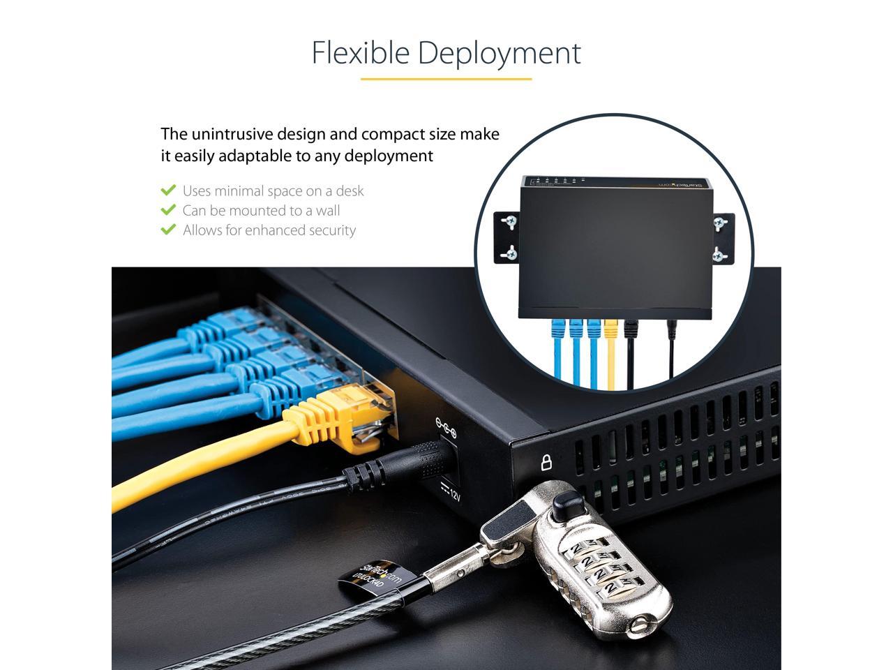 - FLEXIBLE DEPLOYMENT: The compact, all-metal case design uses minimal space on your desk or use the included kit to mount it to a wall. For enhanced security, the LAN switch has a k-slot as well.