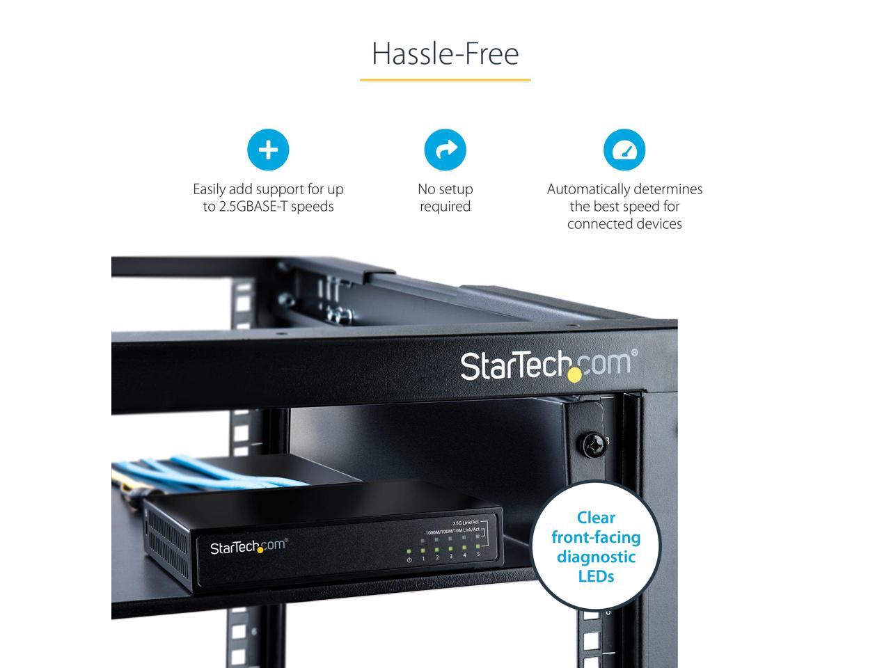 - HASSLE-FREE: Quickly and easily add support for up to 2.5GBASE-T speeds for enhanced data transfer rates. The unmanaged switch requires no setup, automatically determines the best speed for the devices connected, and has clear front-facing diagnostic LEDs