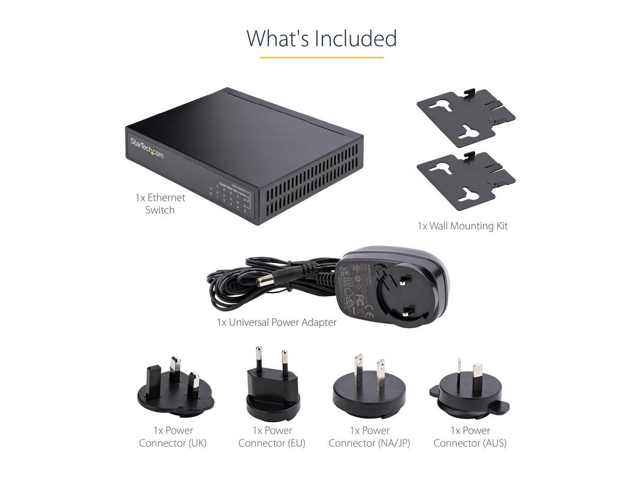 - SPECIFICATIONS: 5 port multi-gigabit switch | 10/1000/1000/2500 Mbps auto-negotiation | Unmanaged | 0C to 50C operating temp. | All-metal housing | 9K Jumbo frame support | Wall mounting kit | Diagnostic LEDs | Fanless | Power adapter included (12VDC/1A)