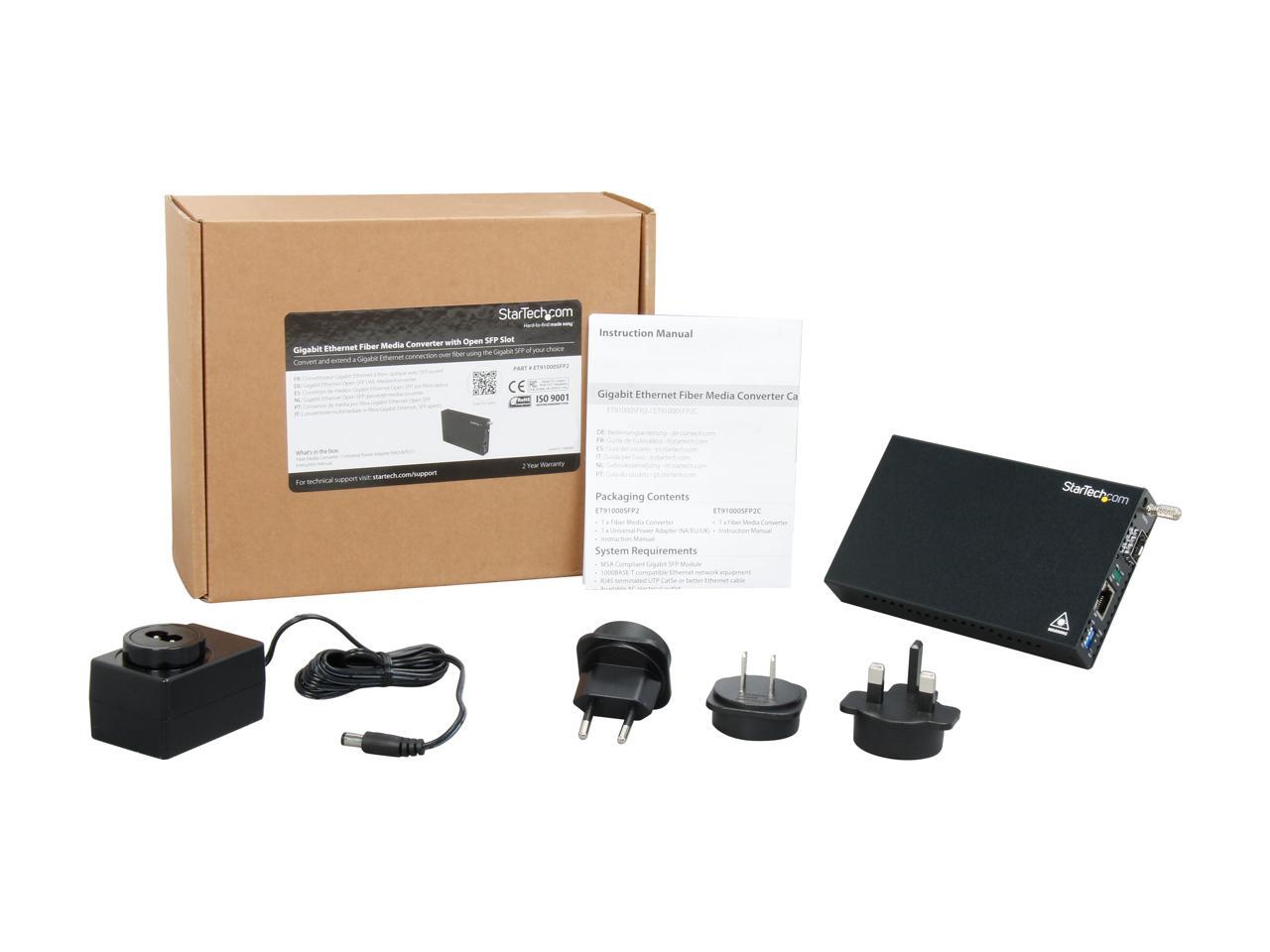 StarTech.com ET91000SFP2 Gigabit Ethernet Fiber Media Converter with Open SFP Slot 1.25 Gbps 1 x SFP Slot Female