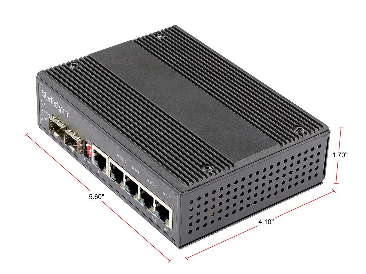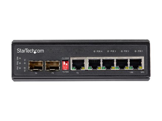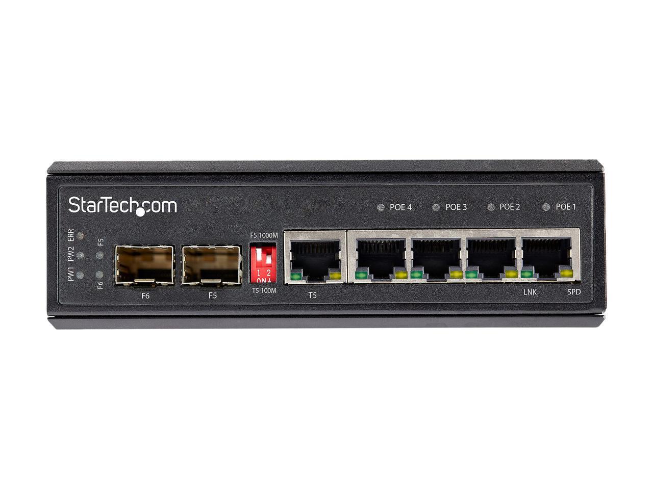StarTech.com Industrial 6-Port Gigabit Ethernet Switch w/ 4 PoE RJ45 +2 SFP Slots