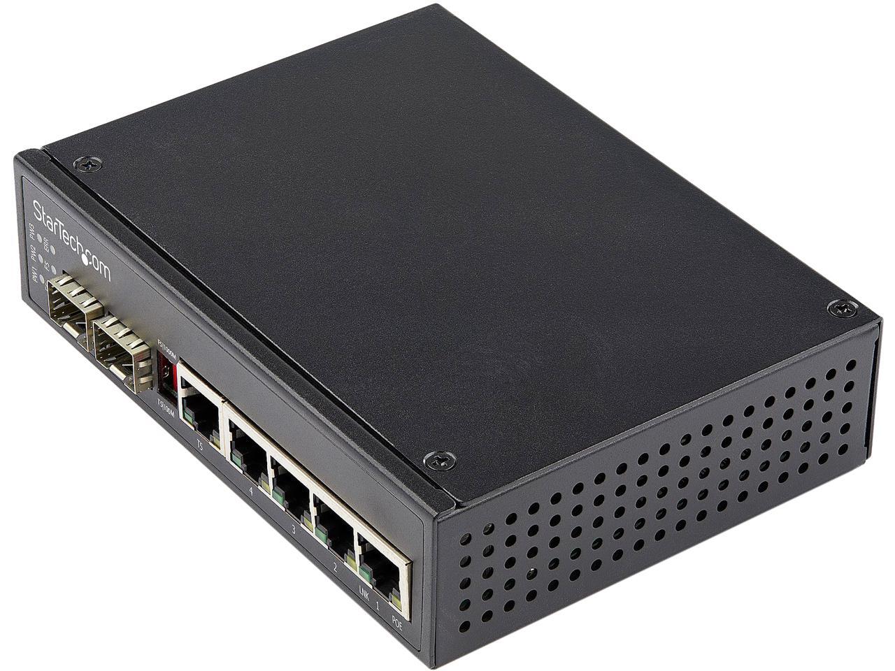 StarTech.com IES1G52UPDIN Industrial 6 Port Gigabit Ethernet Switch 4 PoE RJ45 +2 SFP Slots 30W PoE+ 48VDC 10/100/1000 Power Over Ethernet LAN Switch -40°C to 75°C with DIN Connector/Mountable (IES1G52UPDIN)