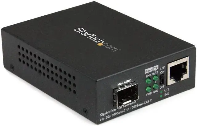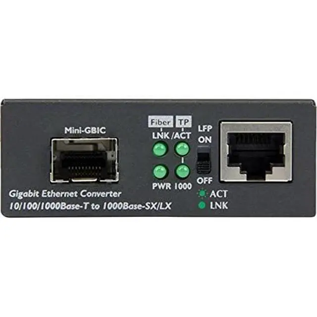 The Gigabit fiber media converter provides a cost-efficient way to connect your Ethernet network to remote devices over a fiber backbone. It features an open SFP slot that lets you choose the MSA-compliant Gigabit SFP that best suits your fiber connection mode (single / multimode) and distance requirements.