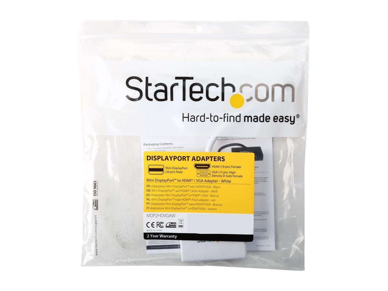 StarTech.com MDP2HDVGAW Travel A/V Adapter - 2-in-1 Mini DisplayPort to HDMI or VGA Converter - mDP to HDMI or VGA Adapter w/ Compact Portable Design