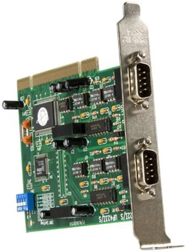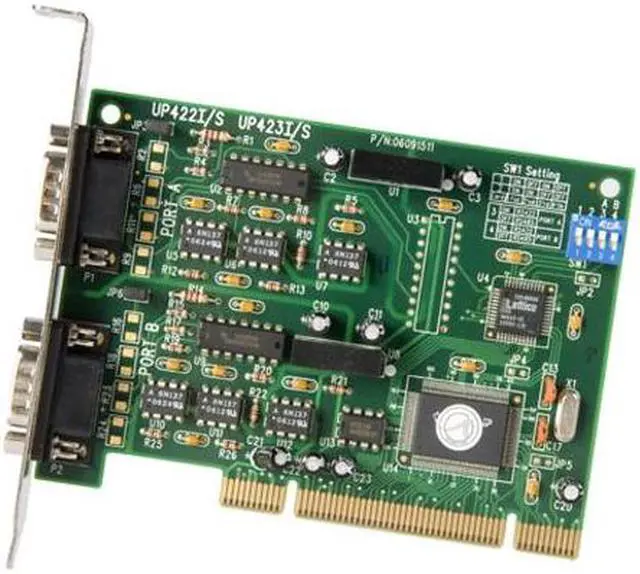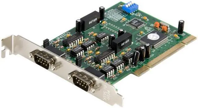 | Features | Mode: RS-422 or RS-485 32 Byte FIFO minimizes data loss and optimizes host efficiency and data integrity Dip switch design allows you to select either RS422 or RS485 serial interface formats depending upon your application Easily fits a 5 volt PCI slot Easy Plug & Play installation PCI version 2.2 compliant RS-485 mode supports Automatic Data Direction Control (ADDCTM) |