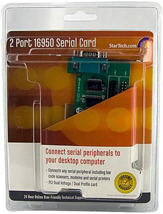 Two Serial PortsThe StarTech PCI2S950DV features two 9-pin RS232 serial ports to add additional serial capability to your computer. Just connect your computer with serial port devices such as modems easily!