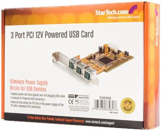 Three External Powered USB PortsThe StarTech PCI312PUSB features three Powered USB male connectors to add USB capability directly to your computer. Powered USB is backwards compatible with USB 1.1 and 2.0. Connect your computer with USB devices easily!