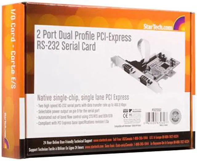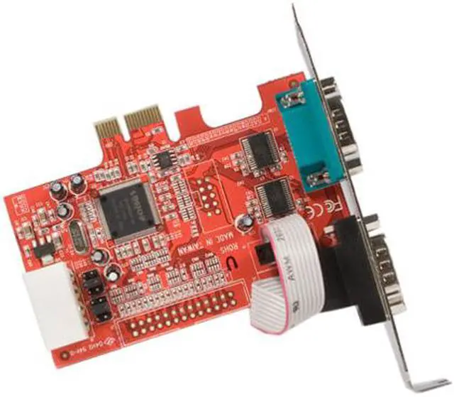 | Features | 128-byte deep FIFO per transmitter and receiver Automated in-band software flow control using programmable Xon/Xoff in both directions Automated out-of-band flow control using CTS/RTS and DSR/DTR Compliant with PCI Express base specifications revision 1.0a Native single-Chip, single lane PCI Express Selectable power output on pin 9 for the serial port Two high speed RS-232 serial ports with data transfer rate up to 460.8 Kbps |