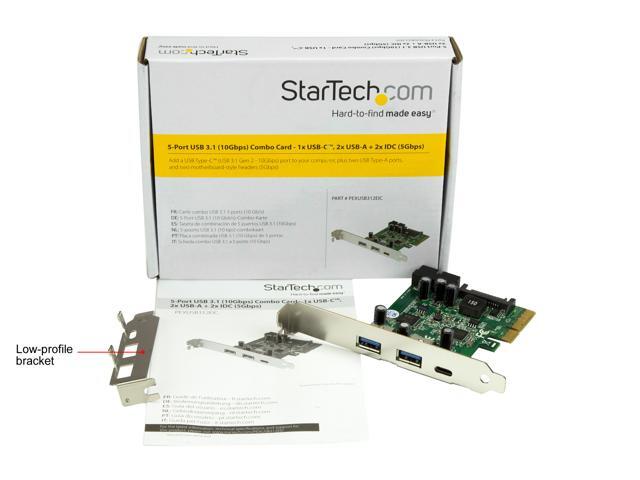 StarTech.com PEXUSB312EIC USB 3.1 PCIE Card - 5 Port - 1x USB-C - 2x USB-A - 1x 2 Port IDC - Internal USB Header Expansion - USB C PCIe Card