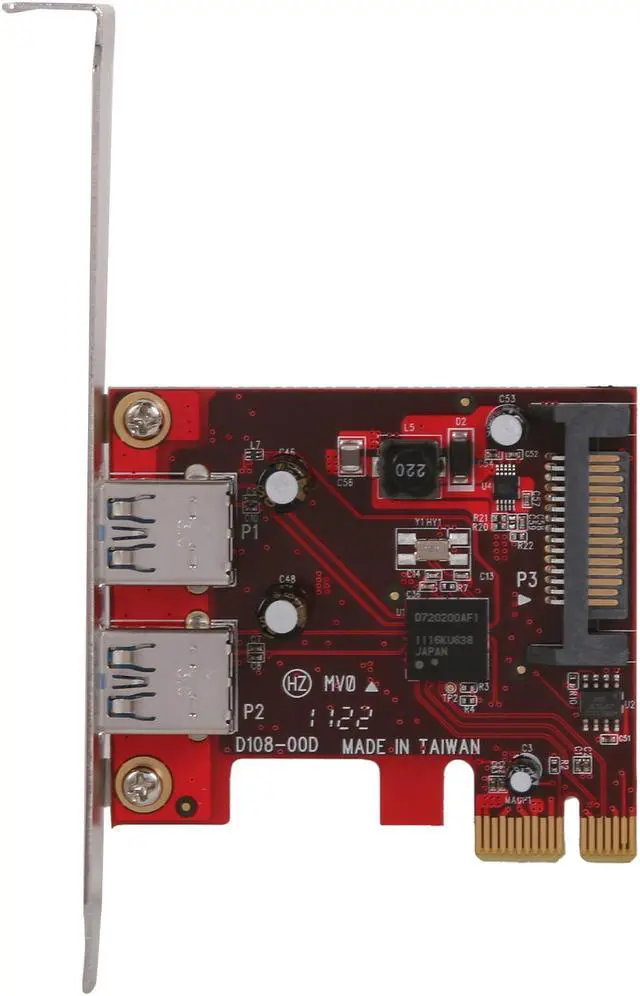 The PEXUSB3S22 2-Port PCI Express SuperSpeed USB 3.0 Card (with SATA Power) lets you add 2 USB 3.0 ports to any PCI Express-enabled computer system. With SuperSpeed USB 3.0, you can reach data transfer speeds up to 5 Gbps, while still being backward compatible with existing USB 2.0 devices at 480Mbps.
