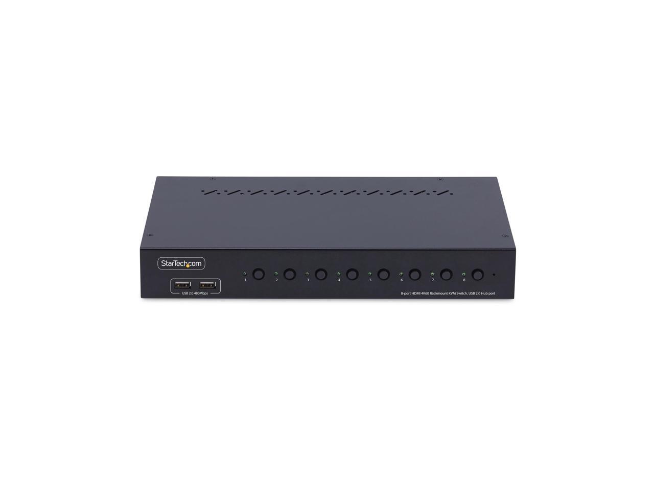 StarTech 8-Port HDMI KVM Switch with 1U Rack Mount Kit, 4K 60Hz HDMI 2.0, Push-Button & Hotkey Switching, 4-Port USB Hub, OS Independent, TAA Compliant - R8AH202-KVM-SWITCH