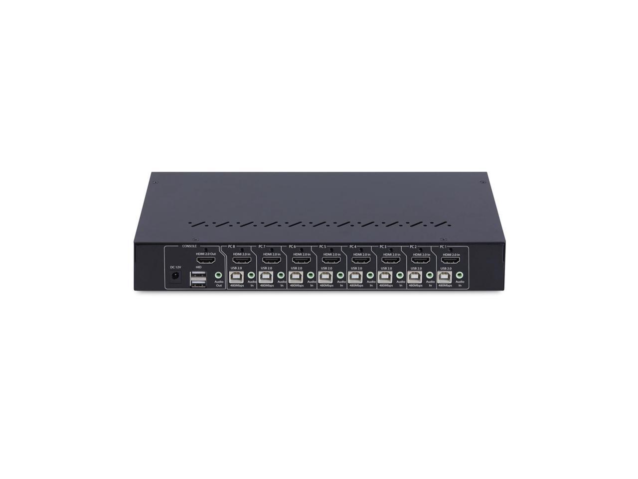 - 4K 60HZ KVM SWITCH: Switch between eight HDMI-enabled computers to share a keyboard, mouse, 3.5mm audio, USB 2.0 hub (2x front/2x rear), and a 4K 60Hz HDMI 2.0 monitor for effortless multi-system management & improved workspace efficiency