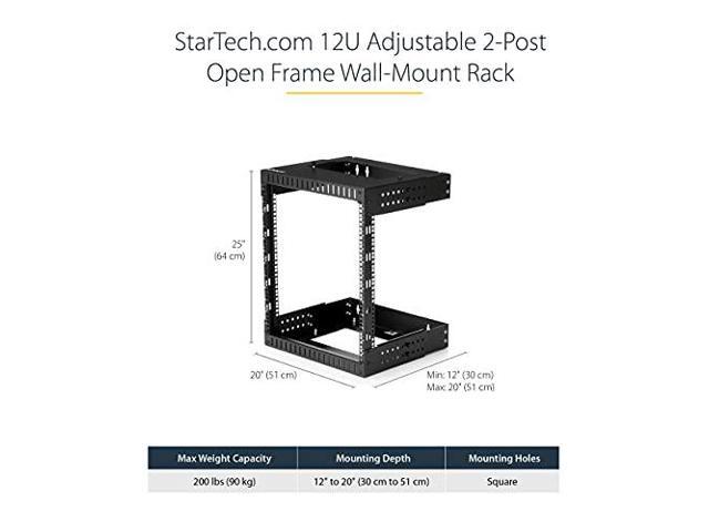 StarTech.com RACK-18U-20-WALL-OA 18U 19" Wall Mount Network Rack - Adjustable Depth 12-20" 2 Post Open Frame Server Room Rack for AV/Data/ IT Communication/Computer Equipment/Switch w/Cage Nuts & Screws
