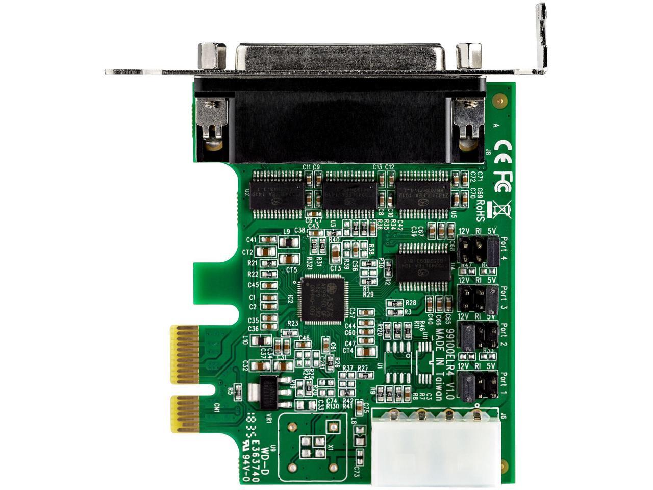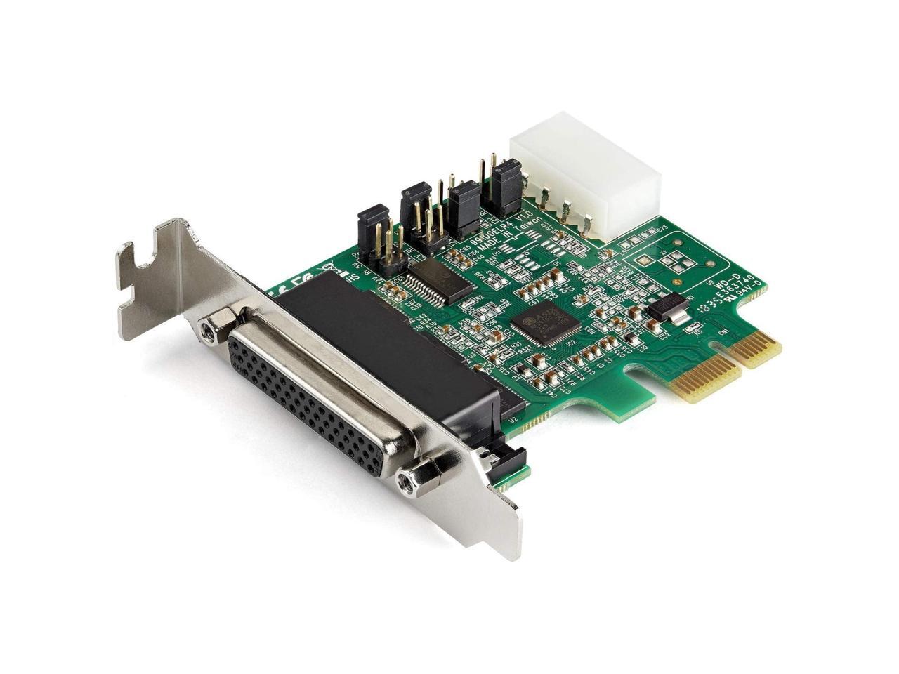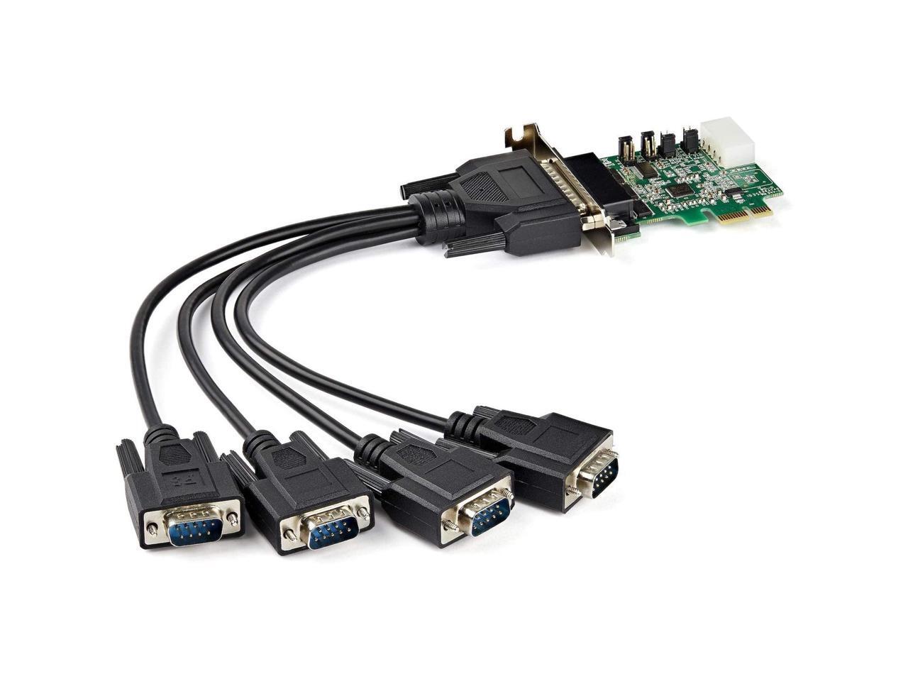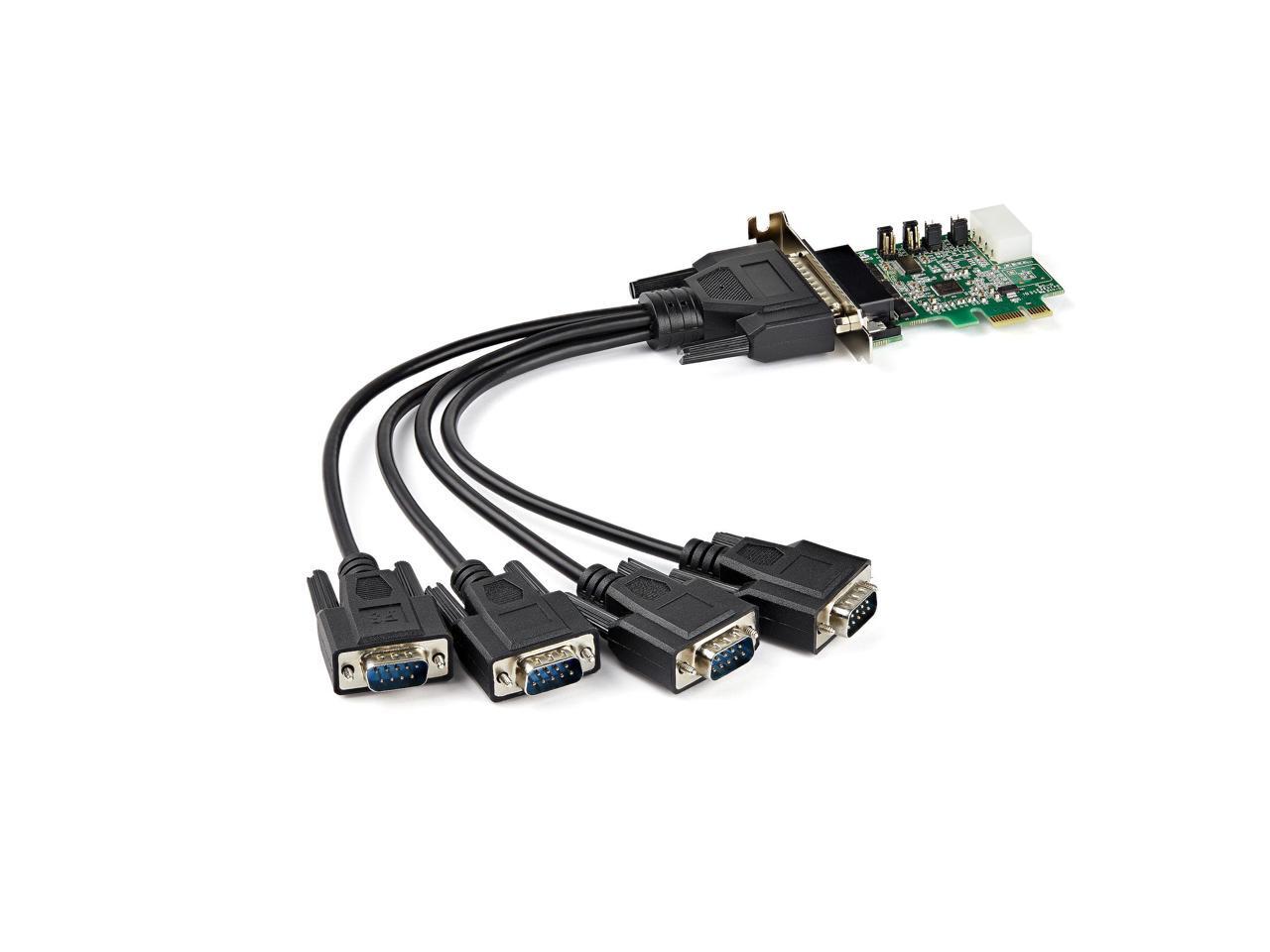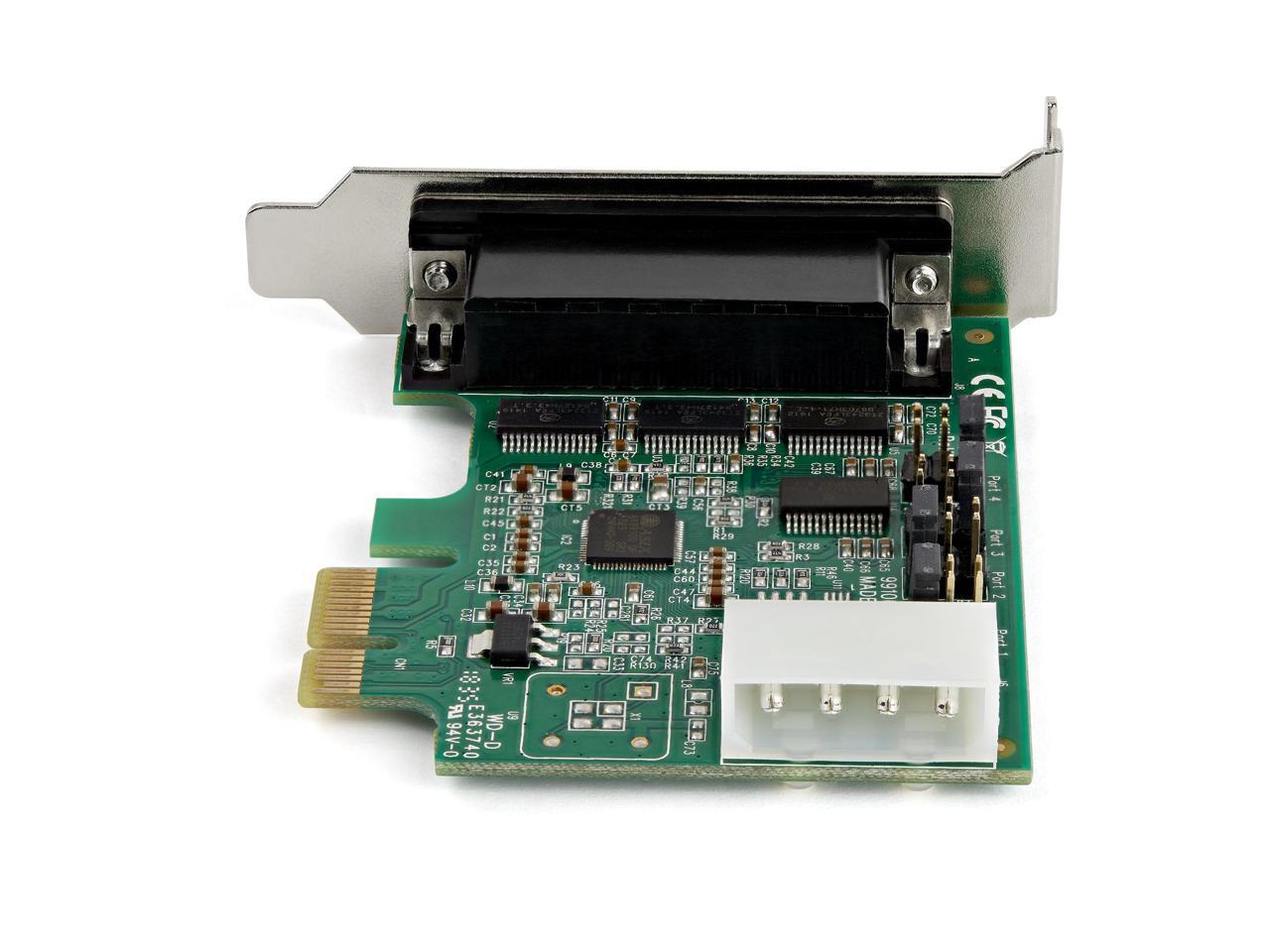 - This PCI Express RS232 serial adapter card lets you add four RS232 (DB9) serial ports to your computer through a PCI Express (PCIe) slot