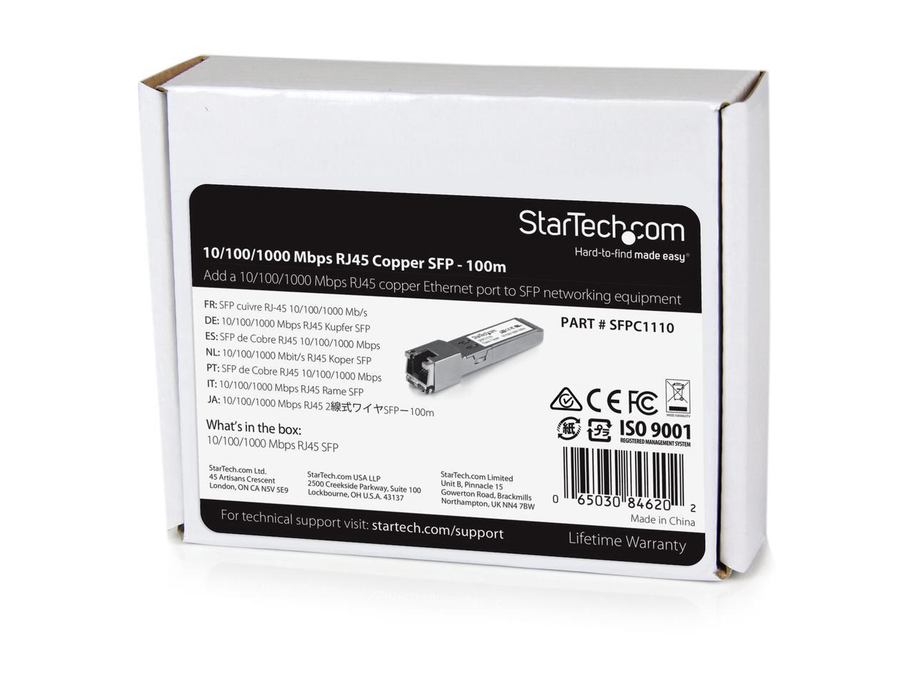 StarTech.com Cisco SFP-GE-T Compatible SFP Module - 1000BASE-T - 10/100/1000 Mbps SFP to RJ45 Cat6/Cat5e Transceiver - 100m