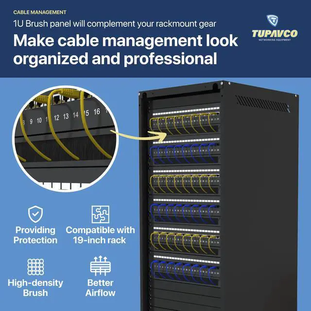 Brush panel will enhance already existing options for cable management rack, cabinet, or enclosure by allowing cables to stretch through blank spaces between networking devices while providing protection at the same time. Its universal design is meant to be compatible with any standard 19-inch rack.