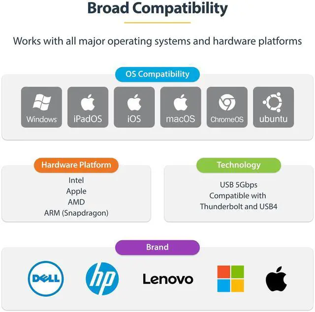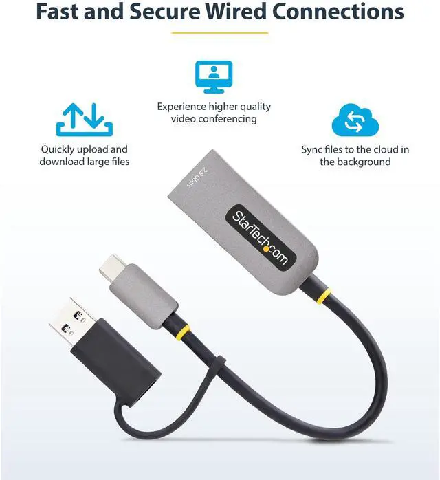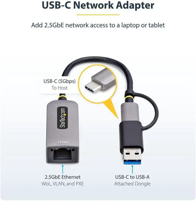 Simply plug this USB-C to Ethernet adapter into the USB port on a laptop and connect to a network. The network adapter Realtek chipset provides native driver support for Windows (10/11, ARM supported) Macbooks (MacOS), Chromebooks (ChromeOS), Snapdragon, Linux, iPhones, and tablets. Any Windows operating systems without the driver will be automatically prompted to download the software directly from the adapter, ensuring quick and effective installation with no Internet access required.