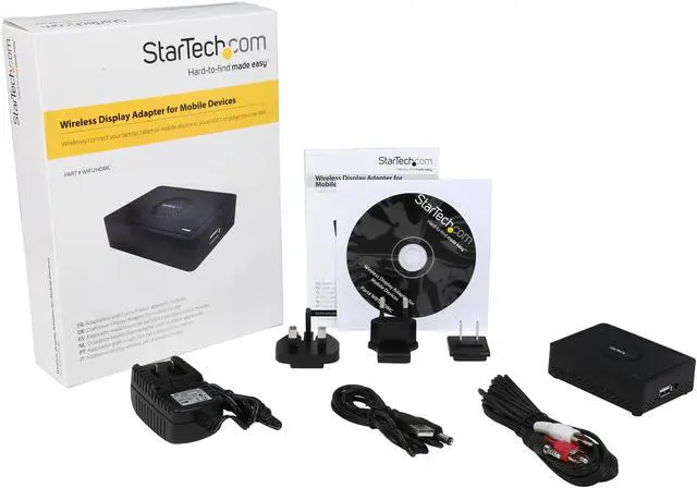 1 x Wireless Display Adapter 1 x Universal Power Adapter (NA/UK/EU) 1 x USB Cable to Power Adapter Port (optional for USB Power source) 1 x 4 position A/V cable 1 x Software Installation Disc 1 x Quick Installation Guide