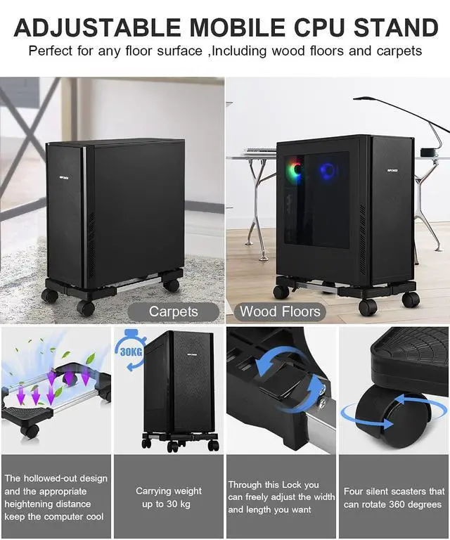 This Light-Duty Computer Tower Stand can be moved in all directions to be placed where you want, allowing you to use it freely at home or in the office