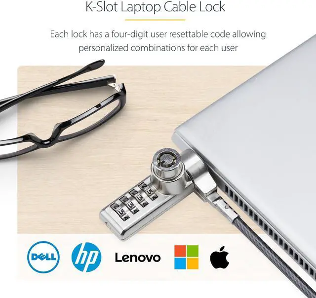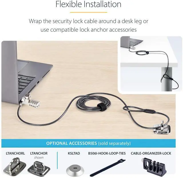 StarTech 10-Pack Dual-Access Laptop Lock, 6.6ft DUALKA10-LAPTOP-LOCK