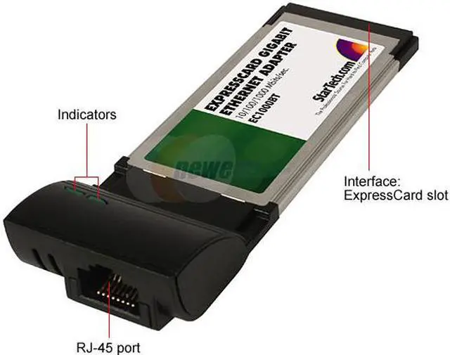 | Features | Applications Add Gigabit Ethernet to any notebook with an ExpressCard expansion slot 10/100/1000 Mbps automatic negotiation Auto crossover cable detection ExpressCard interface eliminates bottlenecks Full and half duplex supported, IEEE 802.3x Standards supported: IEEE 802.2, 802.3u, 802.3ab, 802.1Q |