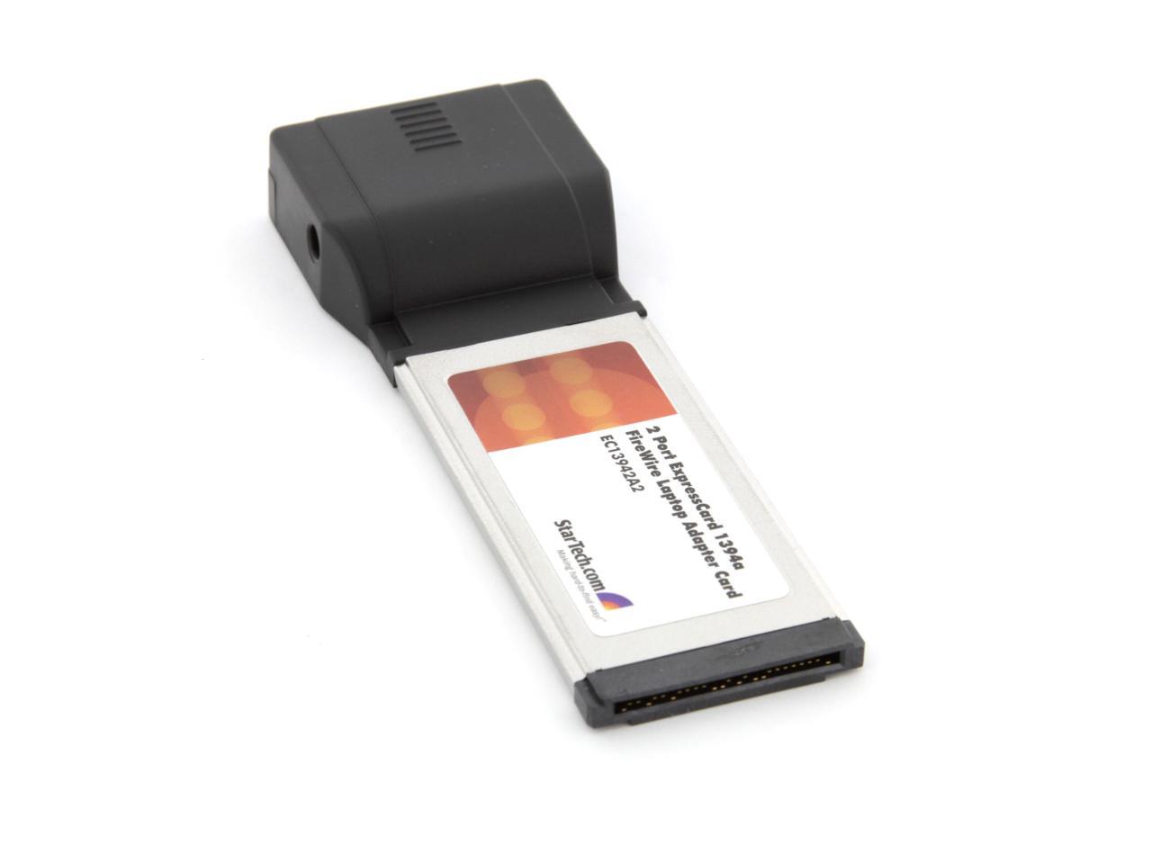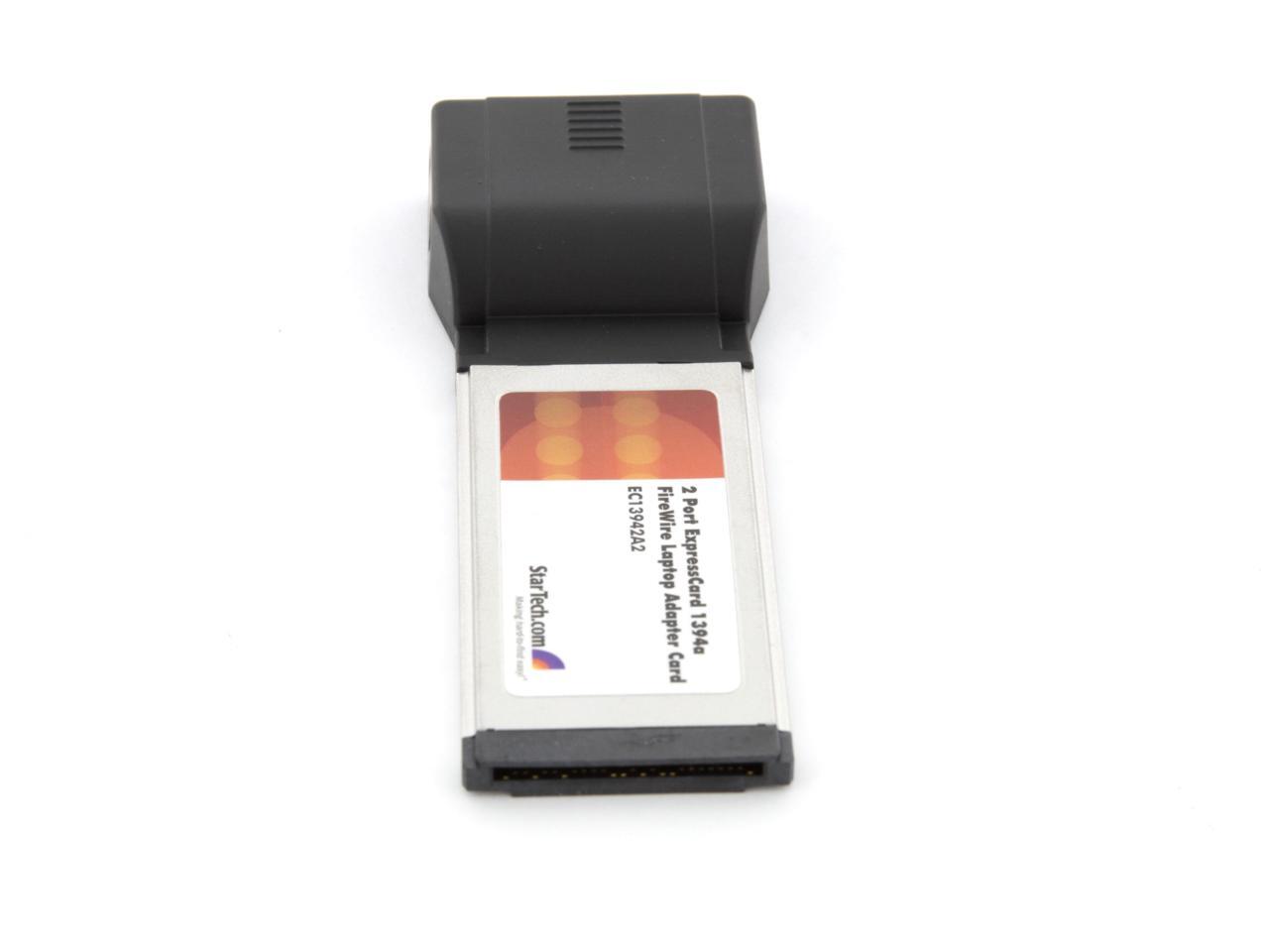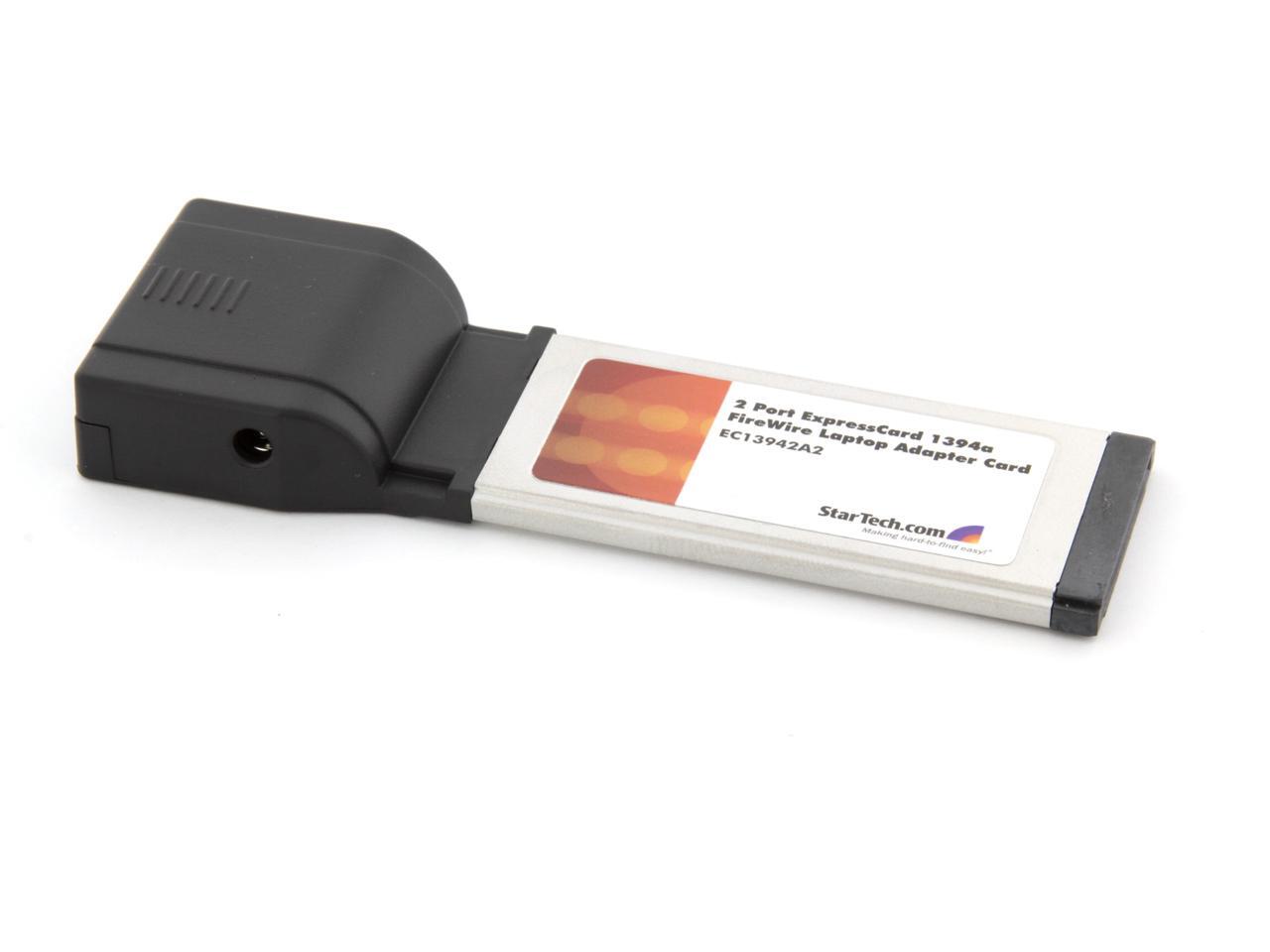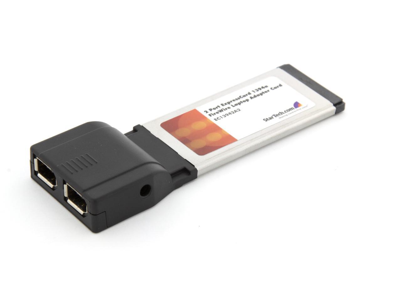 StarTech EC13942A2. Brand NewIncludes 2 Year Warranty. . Product # EC13942A2. . Instantly add 2 FireWire 400 ports to any ExpressCard compatible laptop. The EC13942A2 (2 Port) ExpressCard Laptop 1394a Firewire Adapter Card provides a stable platform for virtually any FireWire 400 device connection.Ensuring seamless operation with peripherals connected through FireWire 400, the ExpressCard 1394a FireWire Adapter supports data transfer rates at up to 400Mbps - an ideal solution for connecting FireWire-capable multimedia devices, editing multimedia content or simply transferring large volumes of data from a computer to FireWire-connected external storage.As an added convenience, the 2-port FireWire card is packaged with a FireWire cable and ULead video editing software.This 2 port ExpressCard IEEE 1394a FireWire 400 Laptop adapter card is designed to fit a 34mm ExpressCard slot and is backed by a StarTech.com lifetime warranty.. . EC13942A2