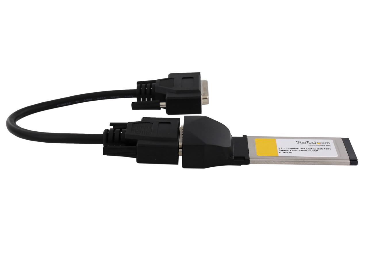 This ExpressCard Parallel Adapter turns an ExpressCard slot into a Parallel port allowing you to connect SPPEPPECP parallel devices to a laptop computer.
