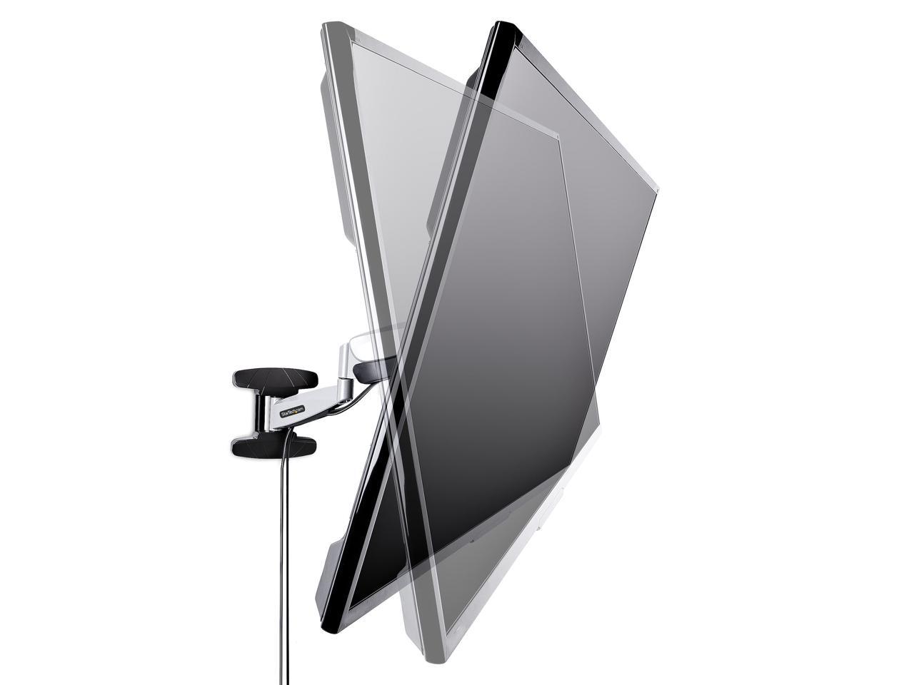RANGE OF MOTION: Low profile VESA TV wall mount with jointed arm assembly supports +/-90° swivel and folds to just 2.2in (5.8cm) from the wall; Max arm extension 23.4in (59.5cm); Lateral range of 3.9ft (1.19m) ideal for corner mounting maximizing space