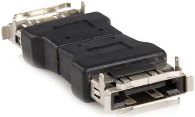 This eSATA Cable Adapter provides two female eSATA ports, offering a cost-effective way to interconnect two male eSATA connectors using two short eSATA cables in place of a (longer) single eSATA cable