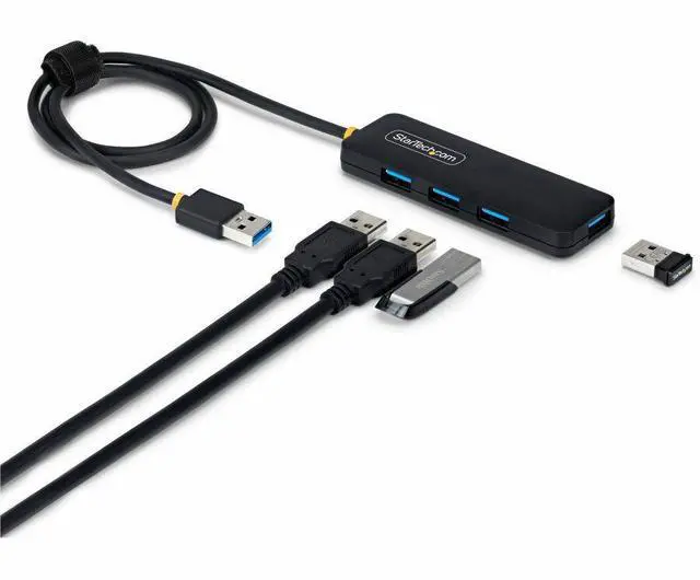 StarTech 4-Port USB-A Hub, 5Gbps, Bus Powered, 4X USB-A Mini Hub, Extra Long 2ft/61cm Host Cable, PCR Plastic