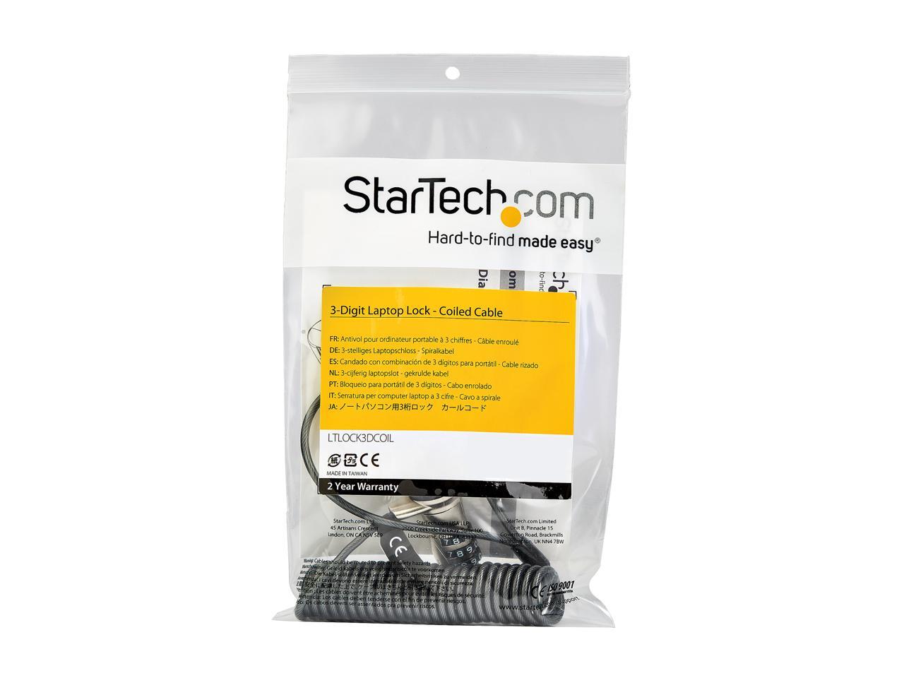 StarTech.com LTLOCK3DCOIL Laptop Cable Lock - With 6' Self-Coiling Cable - Portable 3-Digit Combination Laptop Lock - Laptop Security Locking Cable