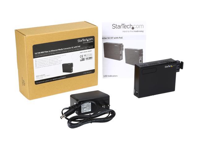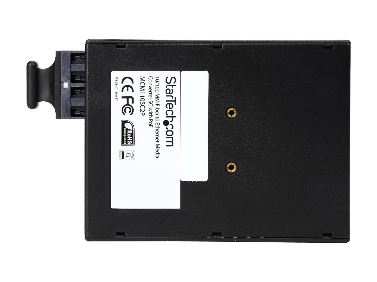 StarTech.com MCM110SC2P 10/100 Multi Mode Fiber to Ethernet Media Converter SC 2km with PoE 1 - Fiber Optic SC Female 1 - RJ45 Female